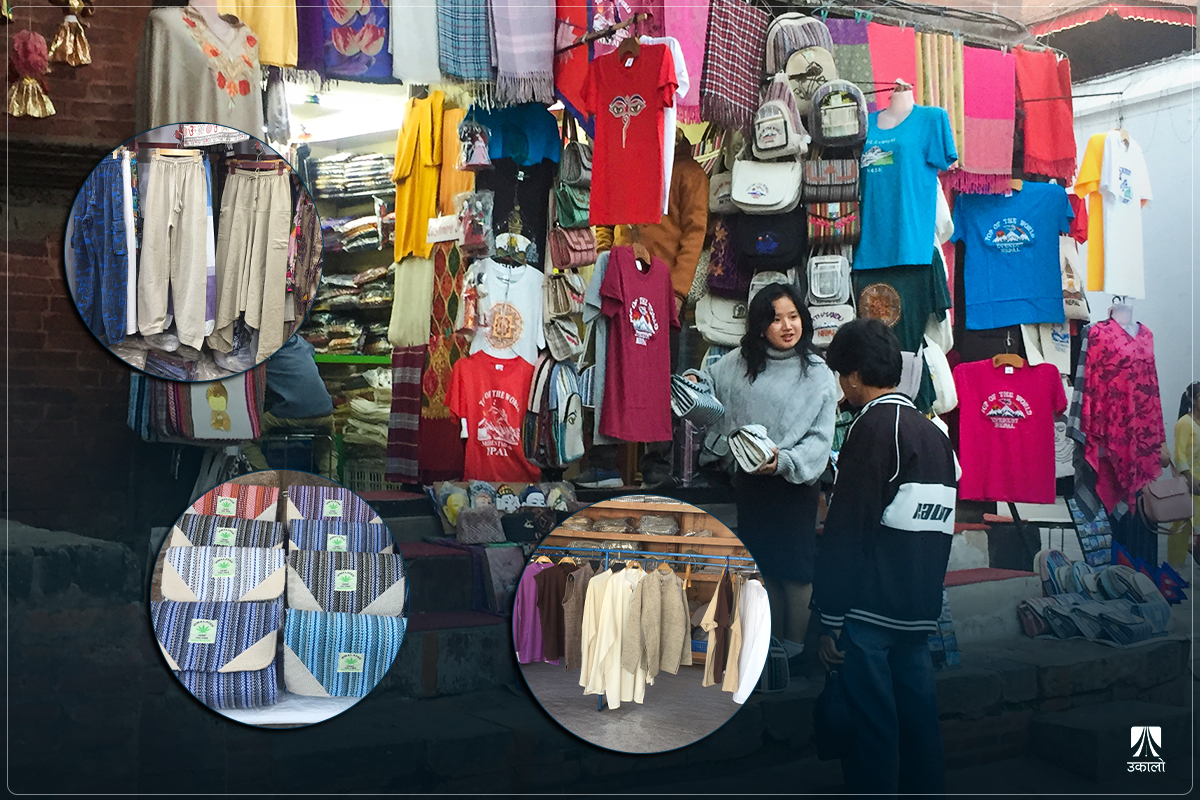 काठमाडौँ— सोनम लामा किनमेलका लागि ठमेल नजिक क्षेत्रपाटीको ‘ए एन्ड बी सप’मा पुगेकी थिइन्। उनी खानेपानीको बोतल राख्नका लागि हातले बुनेको हेम्प (गाँजा, अल्लोजस्ता रेसादार वनस्पतिबाट बनेको)को झोला किन्न मोलमोलाइ गर्दै थिइन्। उनले ५०० रुपैयाँमा आफूले रोजेको झोला किनिन्।