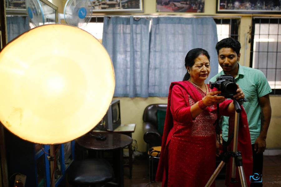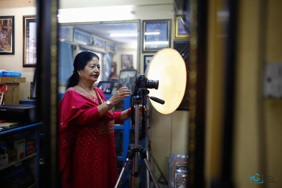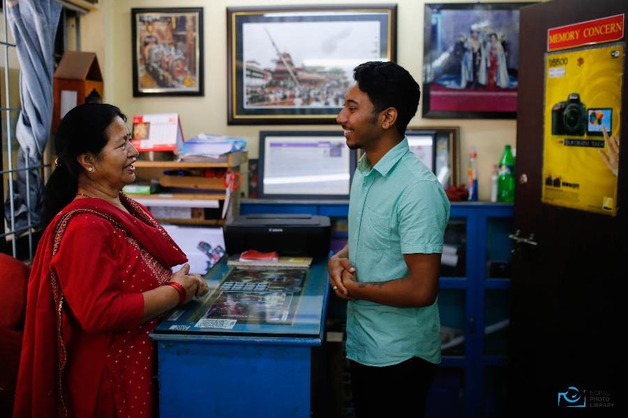 नेपालको धेरै भिडभाड हुने ठाउँमध्येको एक हो, न्युरोड। जहाँ ७० वर्षीया मैयाँ श्रेष्ठले फोटो स्टुडियो सञ्चालन गरिरहेकी छन्। उनी ५४ वर्षकी भएपछि मात्र यो पेसामा लागेकी हुन्। त्यसअघि राष्ट्रिय वाणिज्य बैंकमा सहायक पदमा कार्यरत थिइन्। पहिले पसलमा ग्राहक धेरै आउँथे। अहिले क्यामरा, ल्यापटप र स्मार्टफोन सर्वव्यापी भए, जसले गर्दा ग्राहक पनि घट्दै गएको उनको अनुभव छ। तस्वीर: स्कन्द गौतम/फोटो लाइब्रेरी