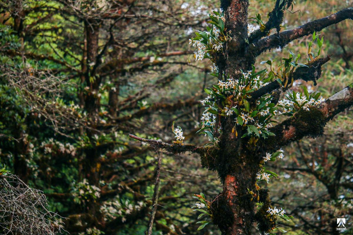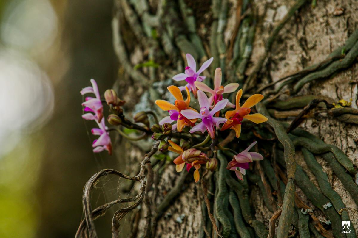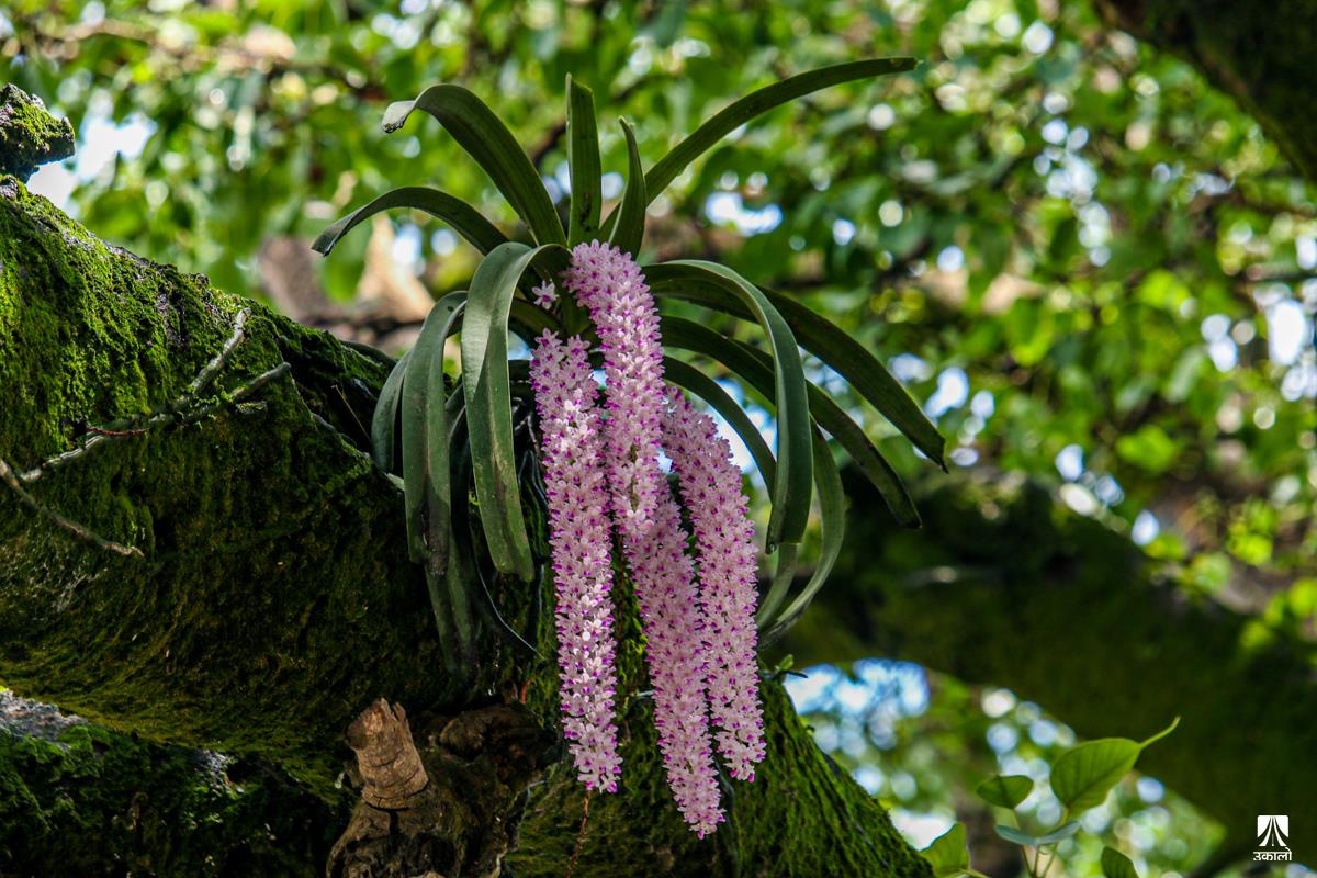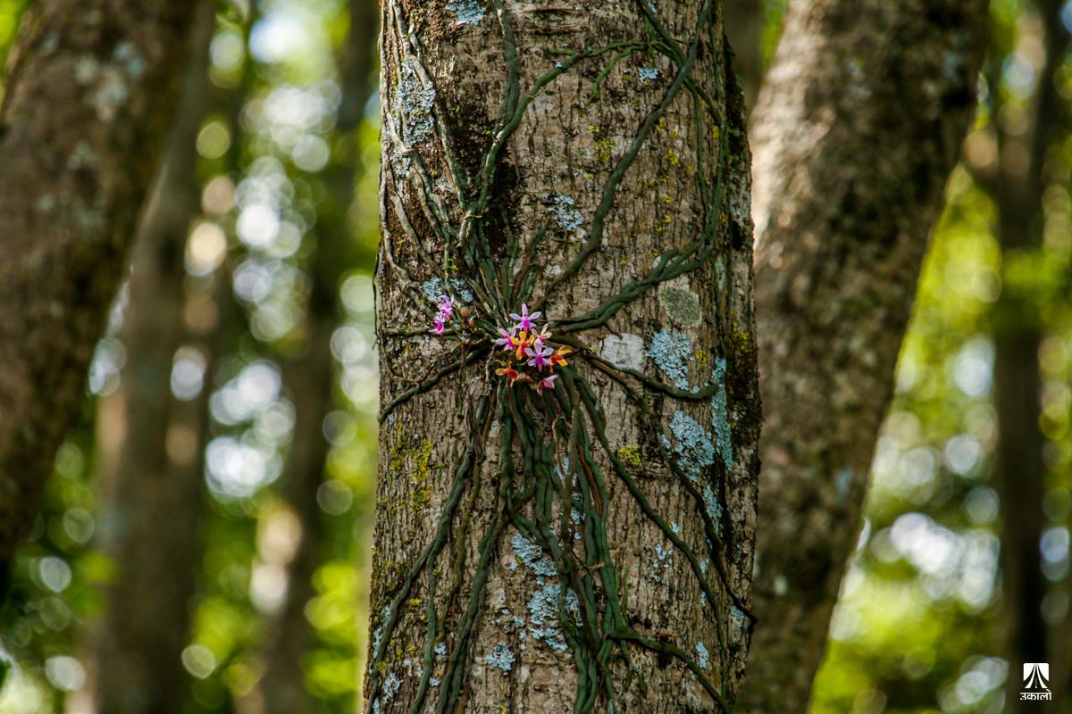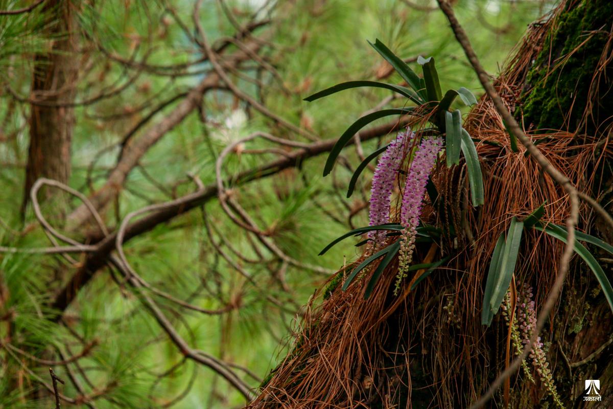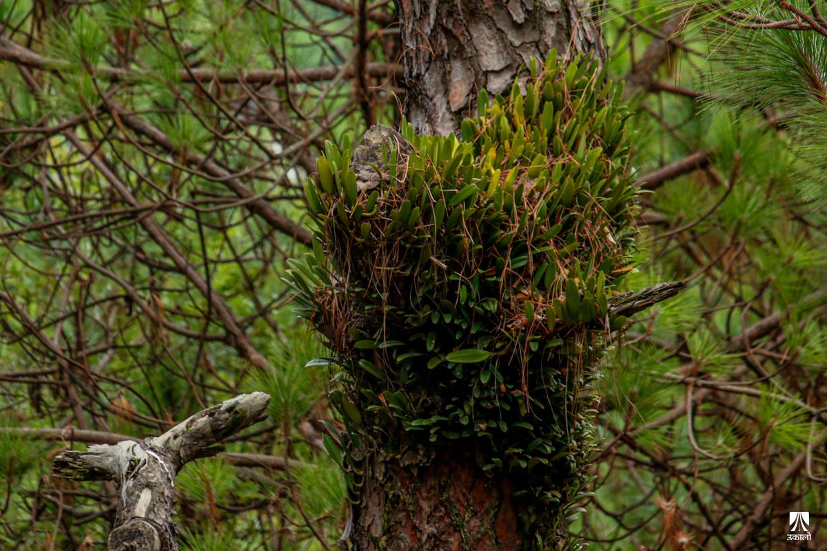 मनसुनको आगमनसँगै वन–जंगलमा चिस्यान बढेको छ। चिस्यान बढेसँगै अजङका बूढा रूखहरूमा एक किसिमको लेउ लागेको देख्न सकिन्छ। यही लेउमा सप्रिन्छ परजीवी फूल सुनाखरी। बूढा रूखको लेउ तथा पातपतिङ्गर जम्मा हुने हाँगाहरूको बीचमा सुनाखरीको बिरुवा हुर्केको हुन्छ। माकुराको जालोजस्तै आफ्ना जरा फिँजाएर फैलने सुनाखरीका फूल निकै आकर्षक देखिन्छन्। आगन्तुकको मन लोभ्याउने परजीवी फूल सुनाखरीले जंगल ढकमक्क पारेर सौन्दर्यता पनि थपेको हुन्छ। हेर्नुहोस् काठमाडौँ उपत्यकाका आसपास वन–जंगलमा पाइएका सुनाखरीका मनमोहक दृश्य। तस्वीर: किसन पाण्डे