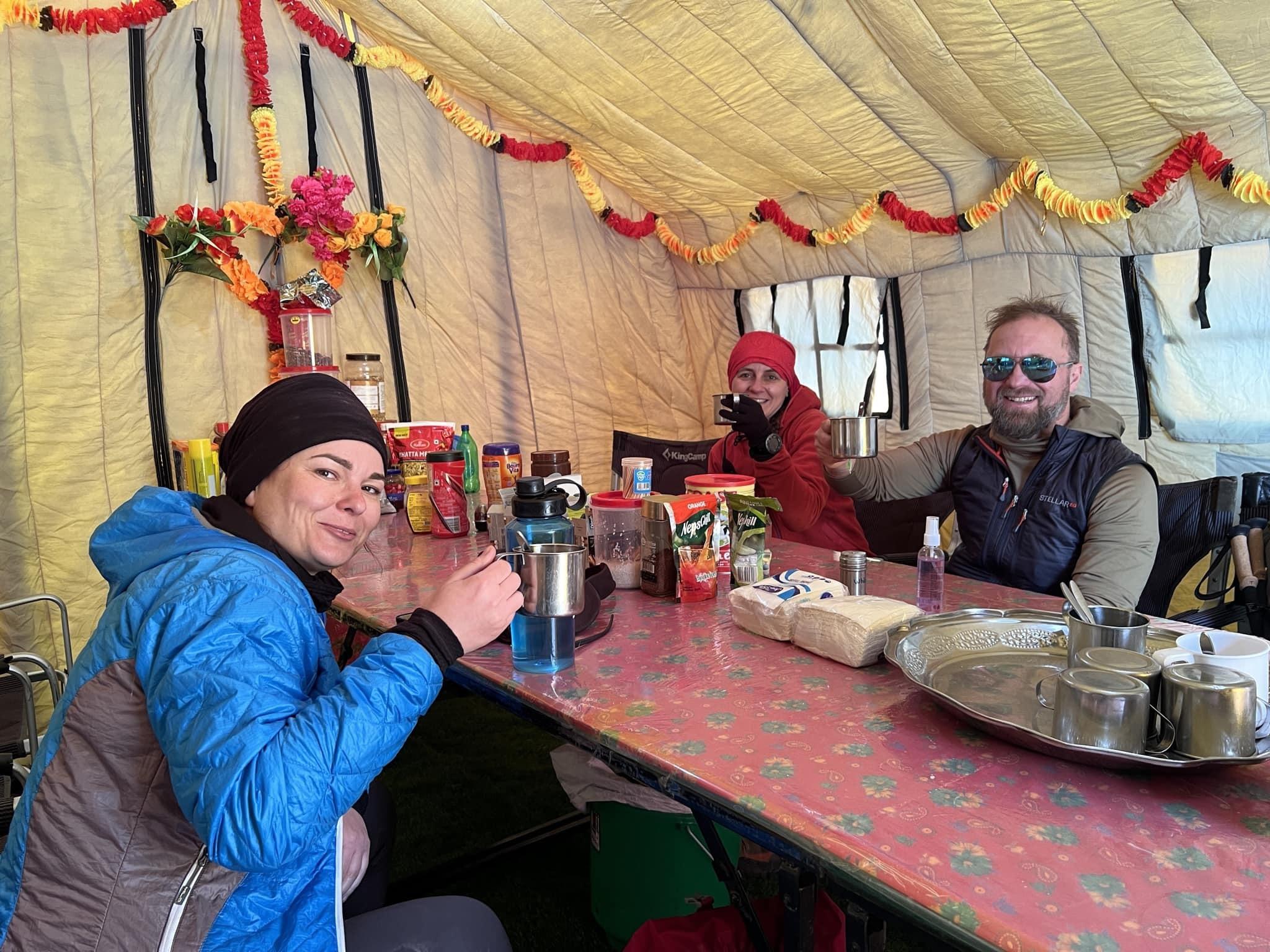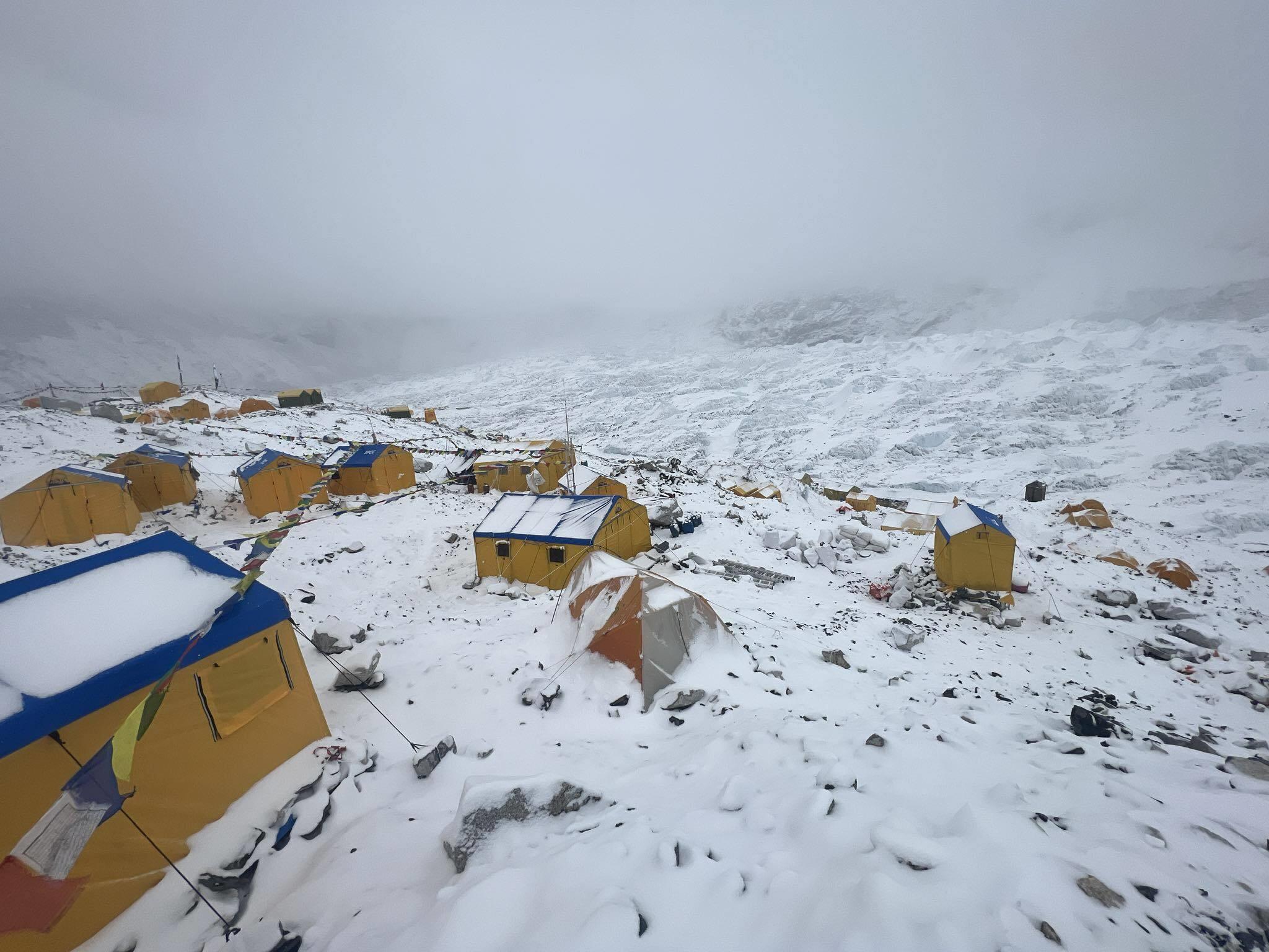 सगरमाथा आरोहीहरू शनिबार सगरमाथा, ल्होत्से र नुत्से हिमालको आधारशिविरमा। सगरमाथा आरोहणका लागि आठ भारतीय र चार पोल्यान्डाका नागरिक सहितको टोली चैत २१ र २२ गते काठमाडौँबाट प्रस्थान गरेका थिए। उक्त टोली सगरमाथा आधारशिविरमा चैत २८ र २९ मा पुगेको हो। आरोहण दलका सदस्य विवेक पाण्डेका अनुसार मौसमले साथ दिए आरोहीहरूको जेठको पहिलो हप्ता सगरमाथा आरोहण गर्ने कार्यक्रम रहेको छ। “सगरमाथा आरोहणपछि १२ सदस्यमध्ये सात जनाले ल्होत्से हिमाल पनि आरोहण गर्दै छन्,” पाण्डेले उकालोलाई बताए। शनिबार विदेशी आरोहीहरूलाई ६०९० मिटरमा रहेको लाबुचे पिकमा तालिमका रूपमा आरोहण गराइएको थियो। शेर्पाहरूले आरोहीहरूलाई आइसवालमा तालिम गराउनुका साथै भर्याङको ब्रिजमा हिँड्न सिकाएको थियो। ल्होत्से र नुत्से आधारशिविरबाट उकालोलाई आरोही दलका सदस्य पाण्डेले पठाएका तस्वीरहरू: