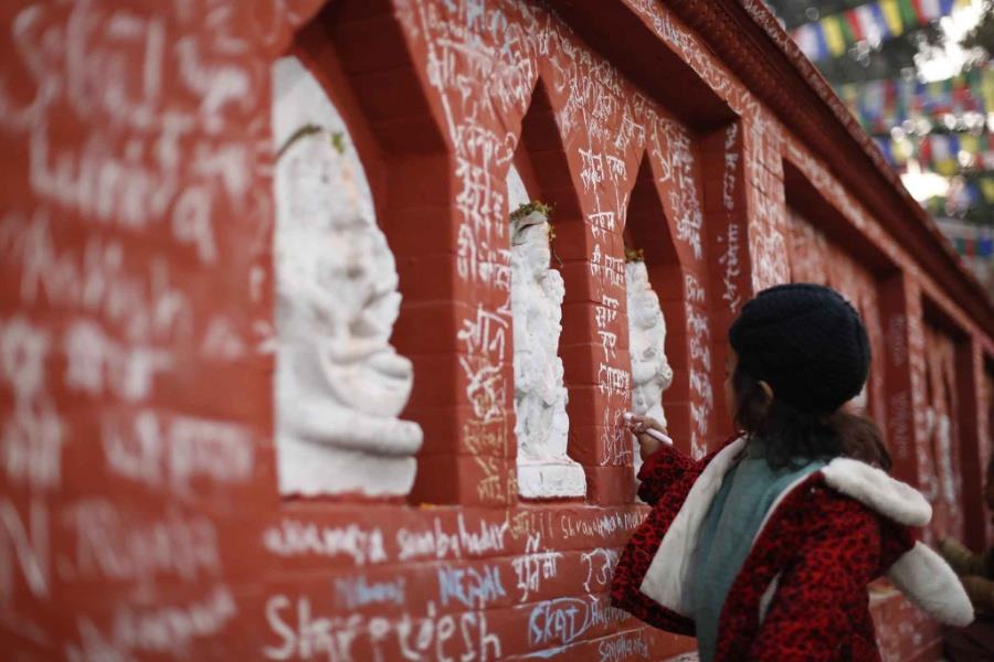 श्रीपञ्चमीलाई अक्षरारम्भको दिन पनि भन्ने चलन छ। यस दिनदेखि बालबालिकालाई विद्यालय पठाउने, लेख्न सिकाउने गरिन्छ। अभिभावकहरू छोराछोरीलाई लिएर मन्दिर, विद्यालय पुगेका छन्। बालबालिकाले विभिन्न मन्दिर र विद्यालयका भित्तामा चकले लेखेर अक्षरारम्भ गरेका छन्। तस्वीरहरू: अमित मचामसी र फाेटाे लाइब्रेरी