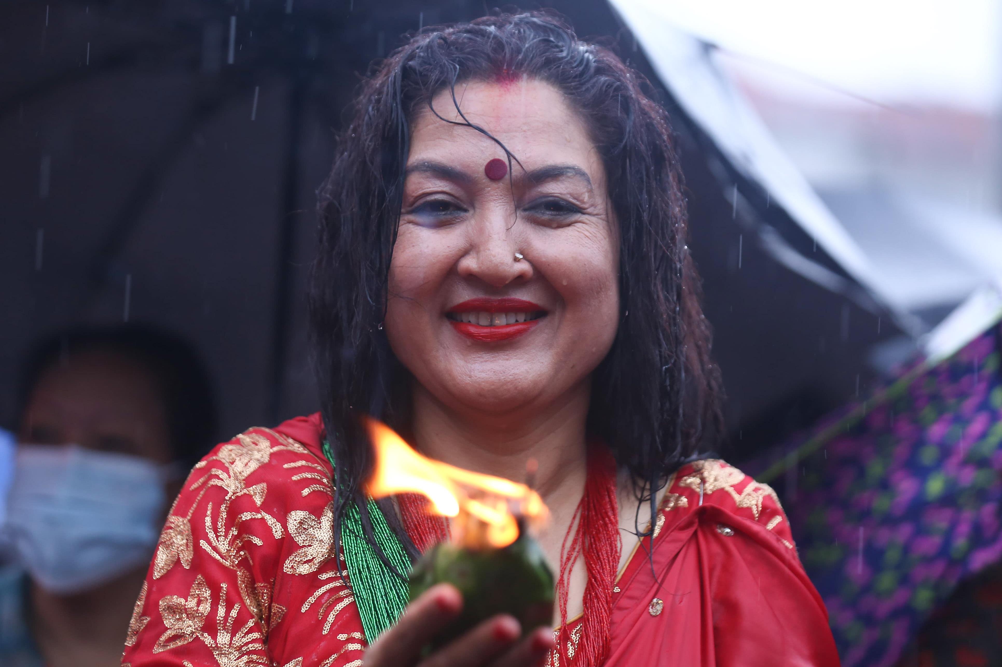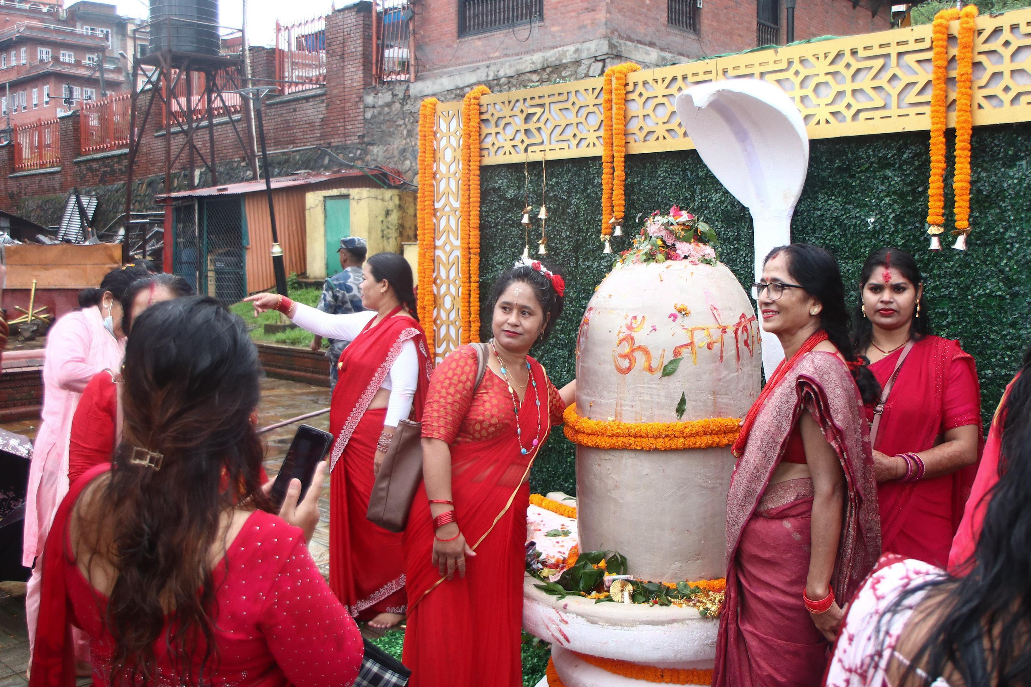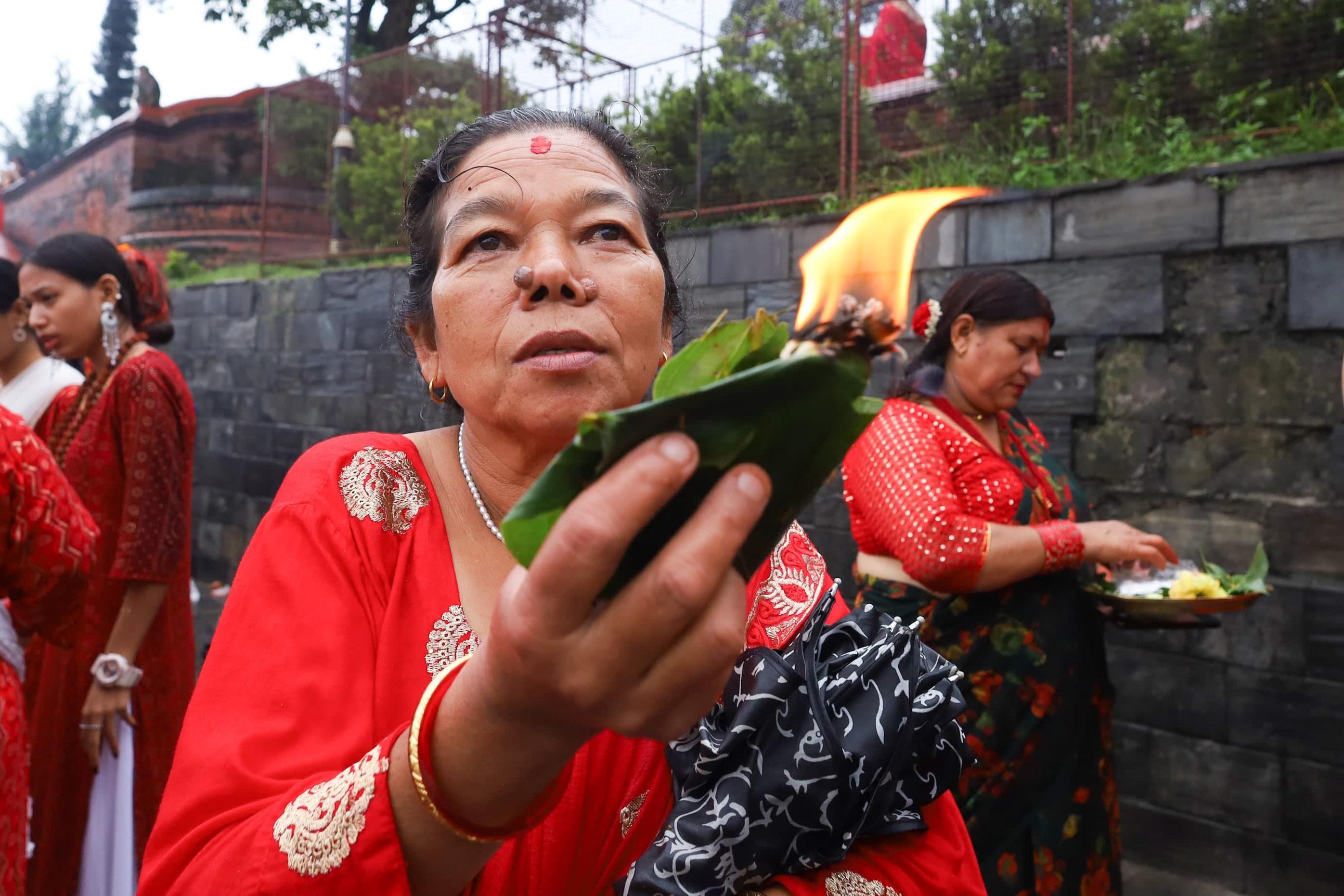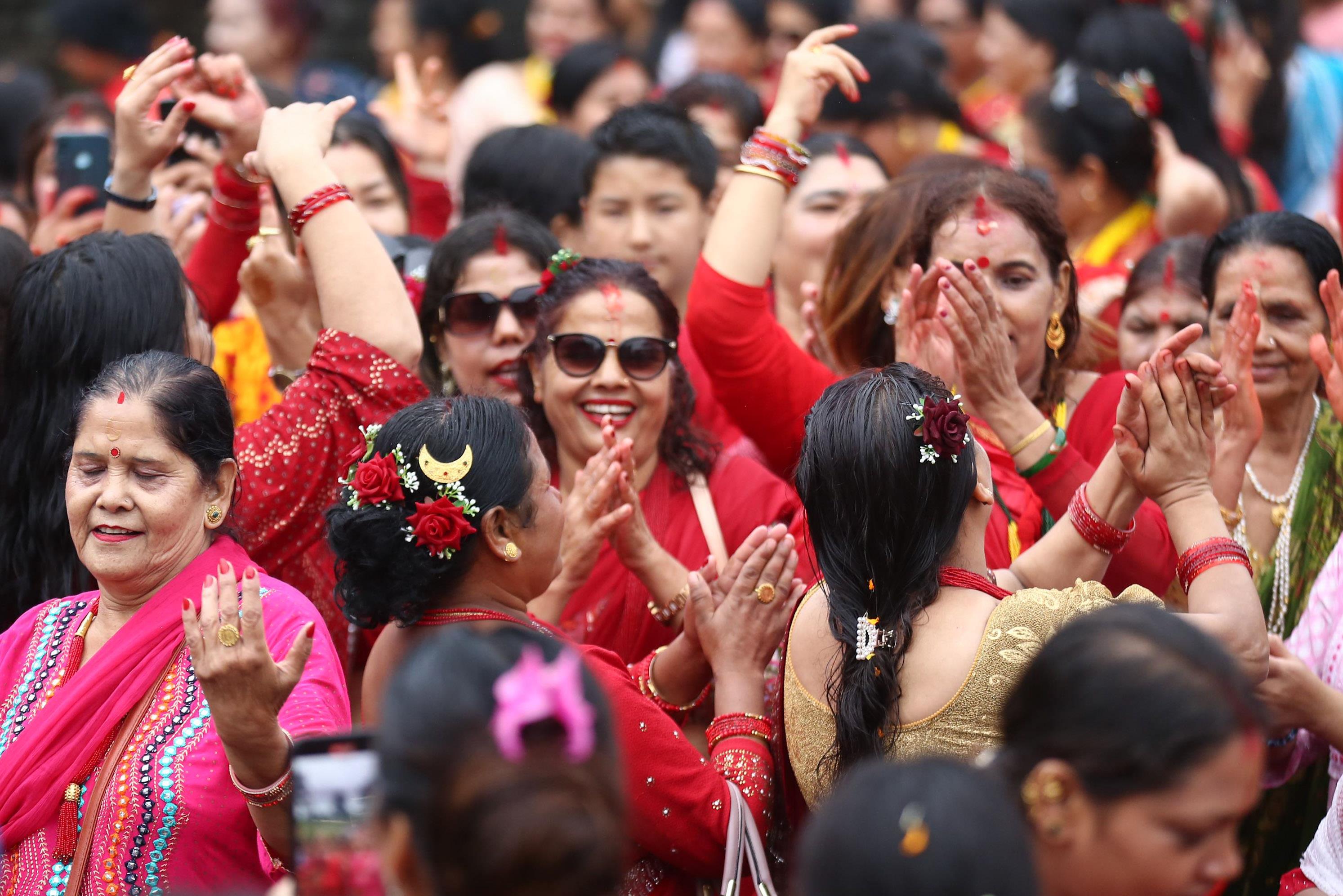 हिन्दू महिलाहरूको महान् चाड हरितालिका तिजको अवसरमा शुक्रबार बिहानैदेखि पशुपतिनाथ मन्दिरमा पूजाआजा गर्न श्रद्धालुको भीड लागेको छ। यस पर्वमा महिलाहरू परिवारमा सुख, शान्ति र कल्याणको कामनासहित व्रत बस्ने गरेका छन्। तस्वीर: नेपाल फोटो लाइब्रेरी।