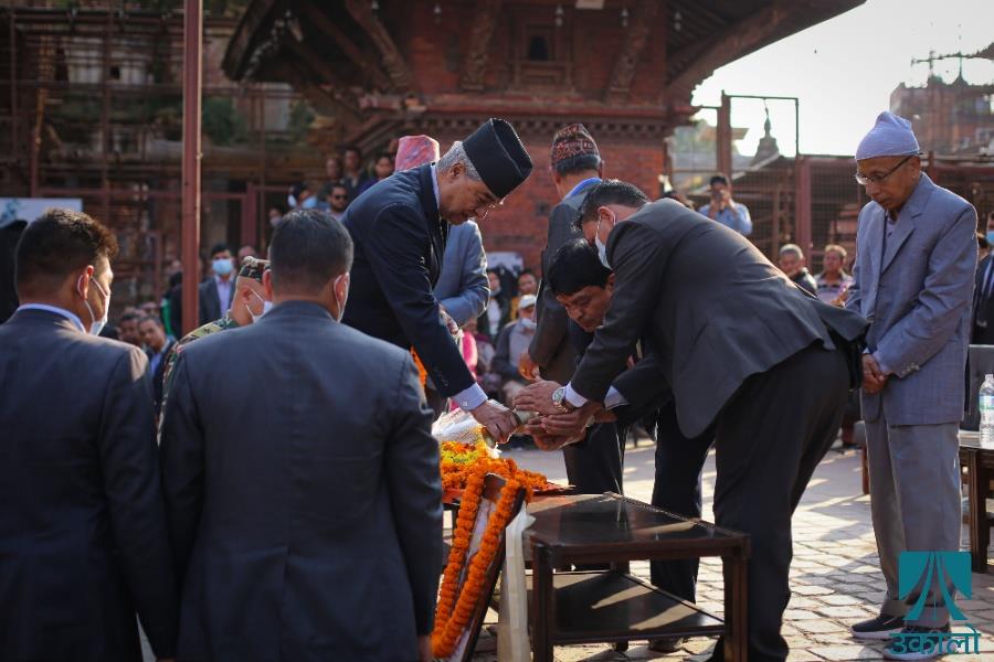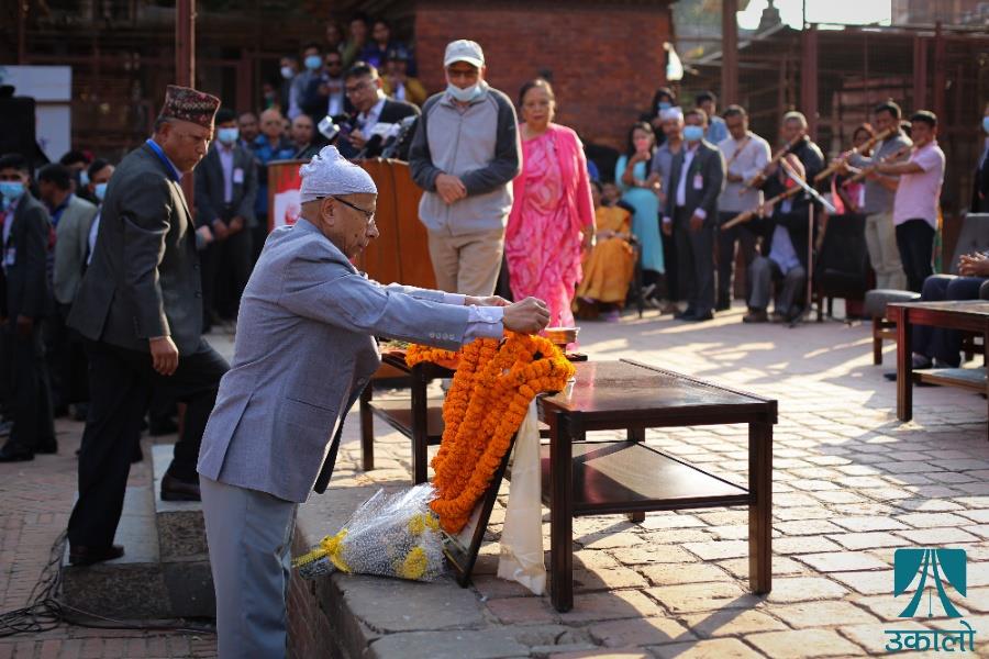 काठमाडौँ- प्रधानमन्त्री शेरबहादुर देउवाको प्रमुख आतिथ्यतामा वाङ्ममय शताब्दी पुरुष डा. सत्यमोहन जोशीको १३औं पुण्य स्मृतिका दिन शोकसभा आयोजना गरिएको छ। शोकसभा ललितपुरको मंगलबजारस्थित कृष्णमन्दिरको प्राङ्गण गरिएको थियो। जोशीको १०३ वर्षको उमेरमा असोज ३० गते निधन भयो। तस्वीरहरू: अमित मचामसी/उकालो