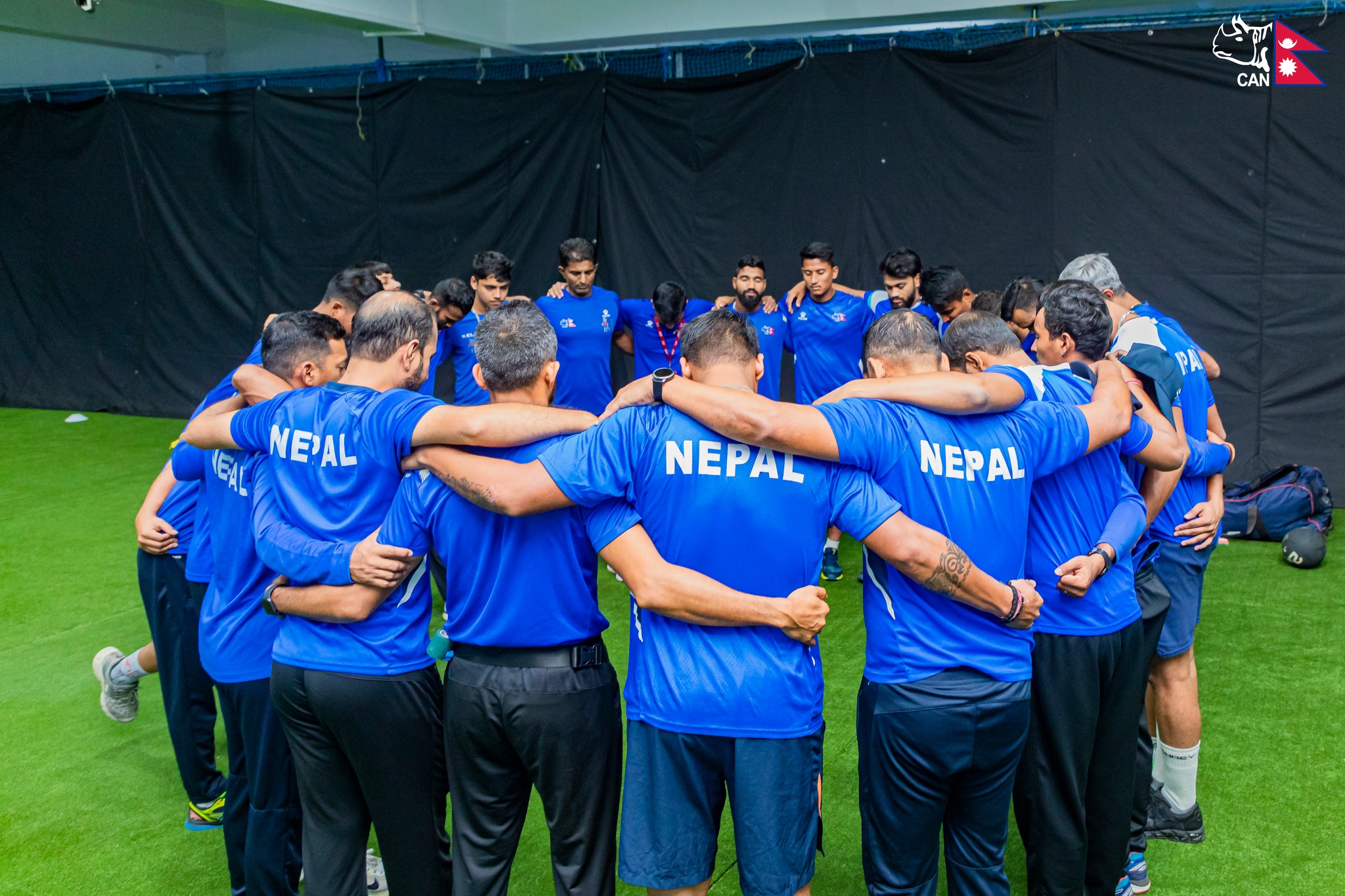 नेपालले सोमबारको खेलमा एक परिवर्तन गरेको थियो। पाकिस्तानविरुद्धको खेलमा टिममा रहेका आरिफ शेखको स्थानमा भीम सार्कीले मौका पाएका थिए। गएको बुधबार पाकिस्तानको मुल्तानमा भएको उद्घाटन खेलमा नेपाल पाकिस्तानसँग २३८ रनले पराजित भएको थियो।