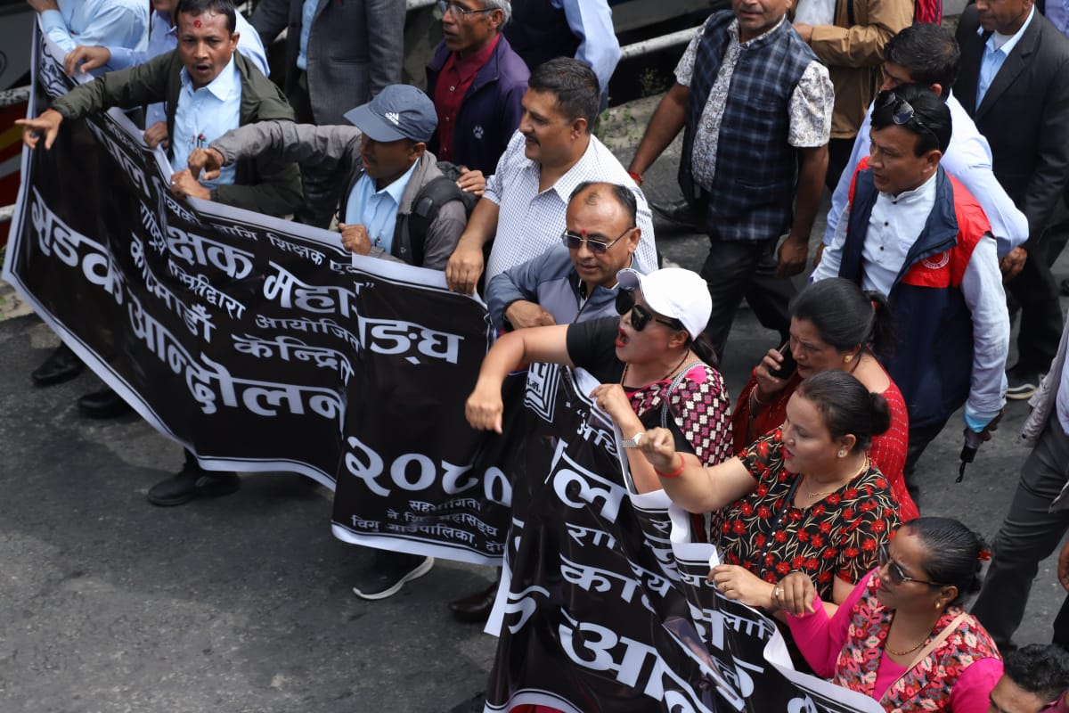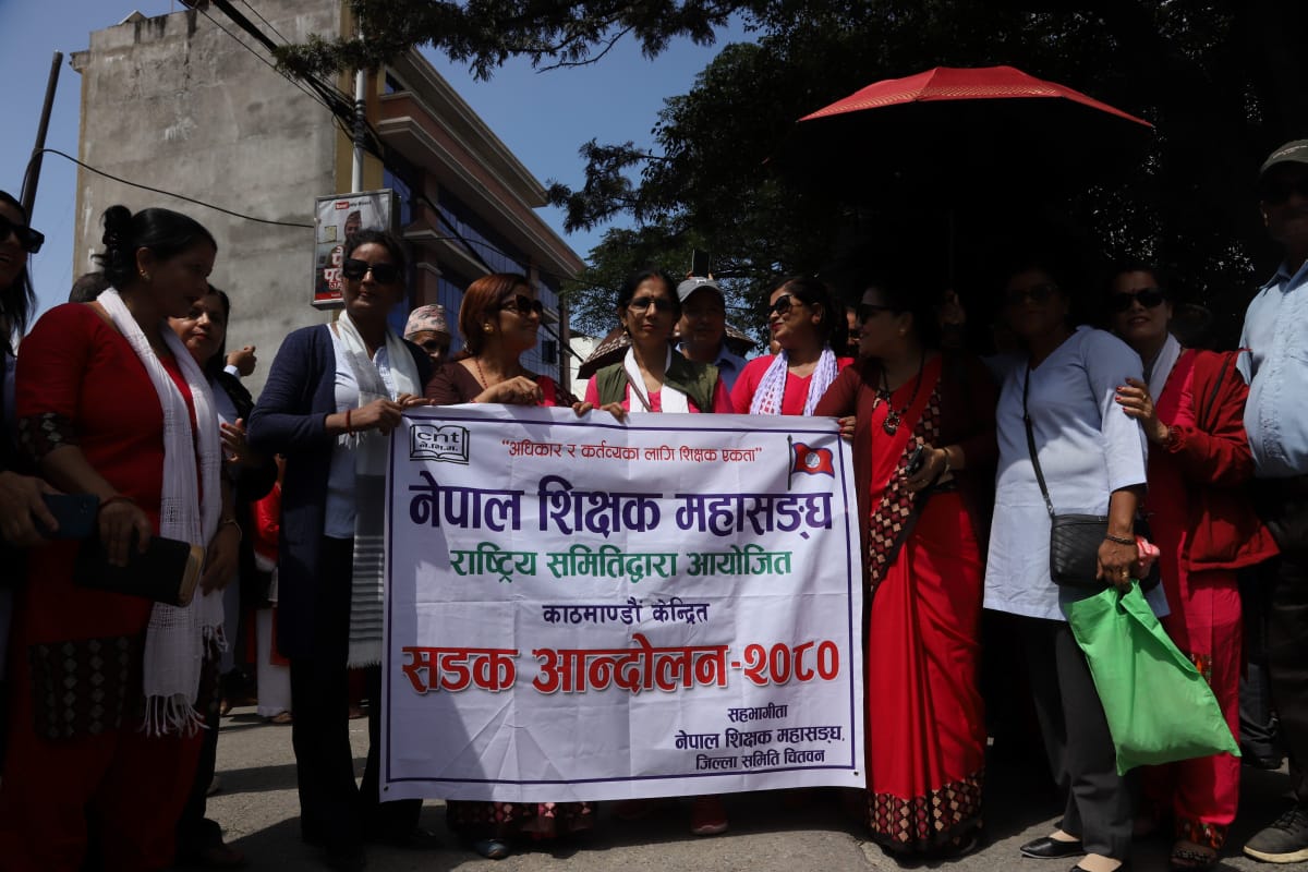 आन्दोलनका लागि ७७ वटै जिल्लाबाट करिब ५० हजार शिक्षक काठमाडौँ आएको नेपाल शिक्षक महासंघका अध्यक्ष कमला तुलाधरले बताइन्।