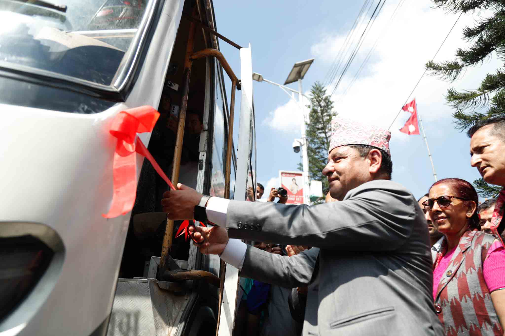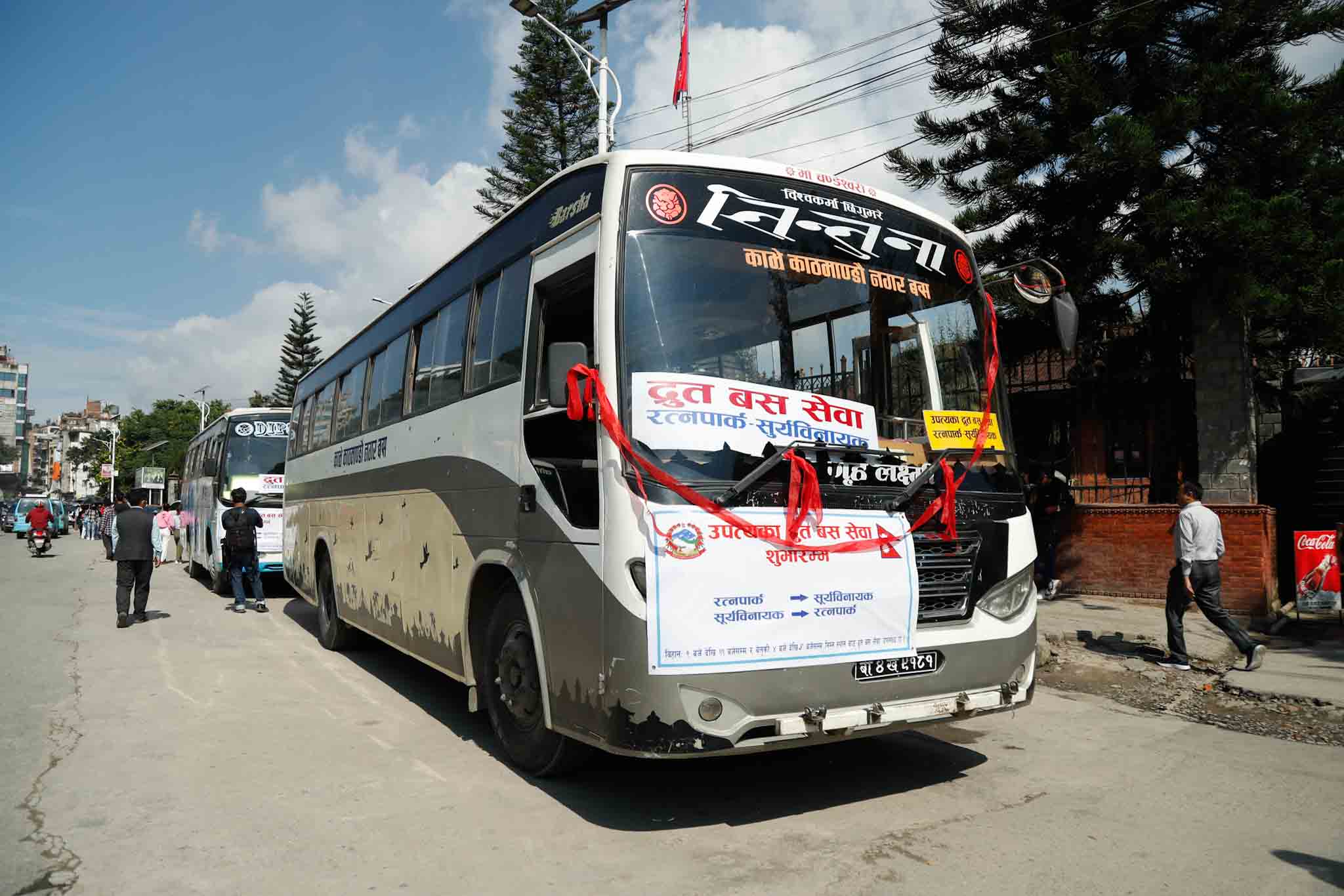 रत्नपार्कस्थित शान्तिबाटिकामा भौतिकमन्त्री प्रकाश ज्वालाले द्रुत बस सेवाको बुधबार उद्घाटन गरेका हुन्।