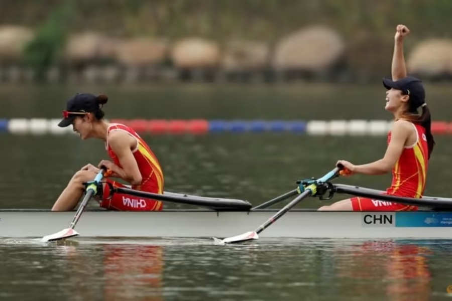 महिलातर्फको डुंगा दौडमा चीनले पहिलो स्वर्ण हात पारेको हो। ‘लाइटवेट डबल स्कल्स रोइङअन्तर्गत भएको फाइनलमा जोउ जियाकी र किउ सिउपिङले स्वर्ण जितेका हुन्।
