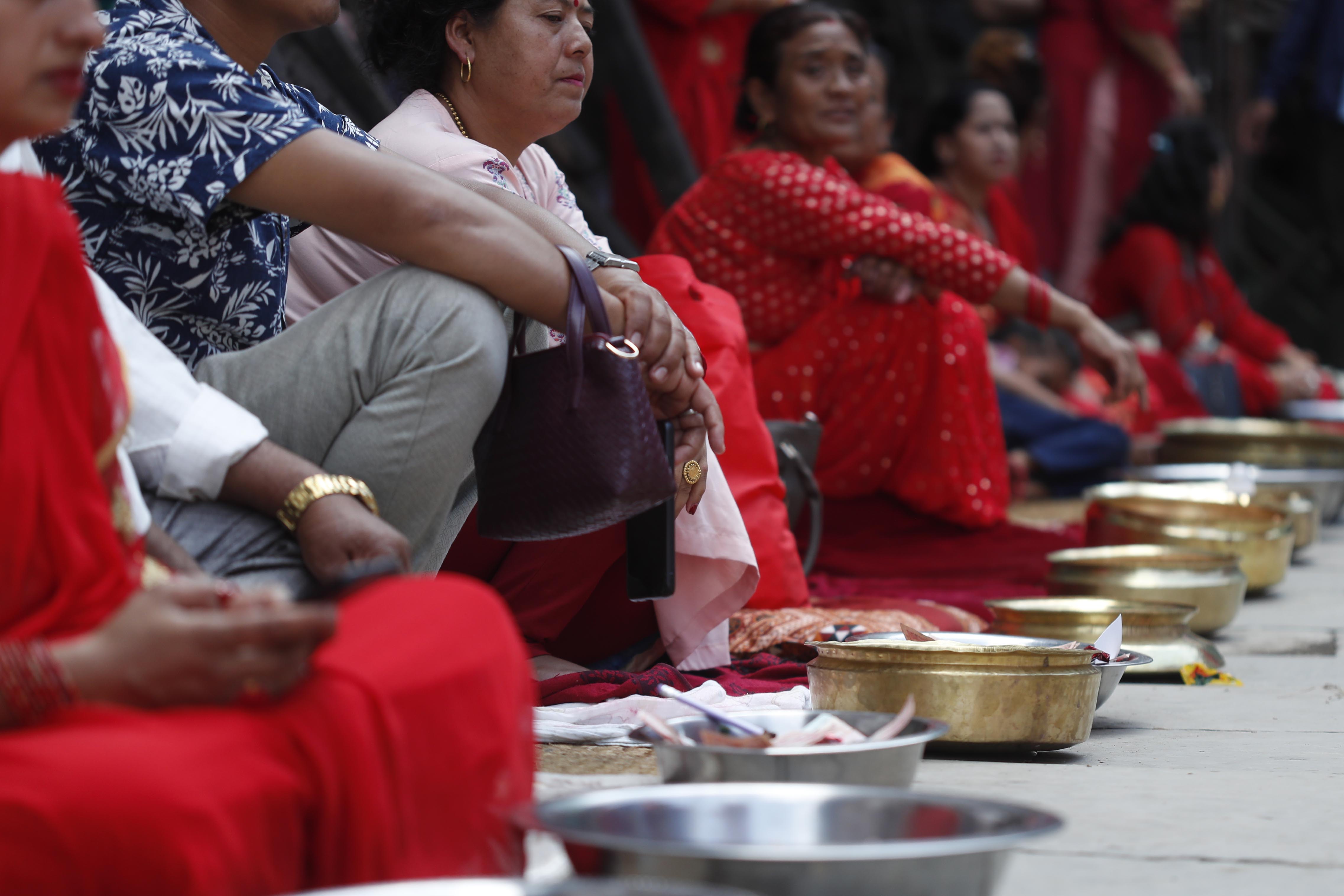 महिनावारी शुरू नभएका बालिकाहरूलाई वैदिक परम्पराअनुसार सामूहिक कुमारी पूजा गरिएको हो।