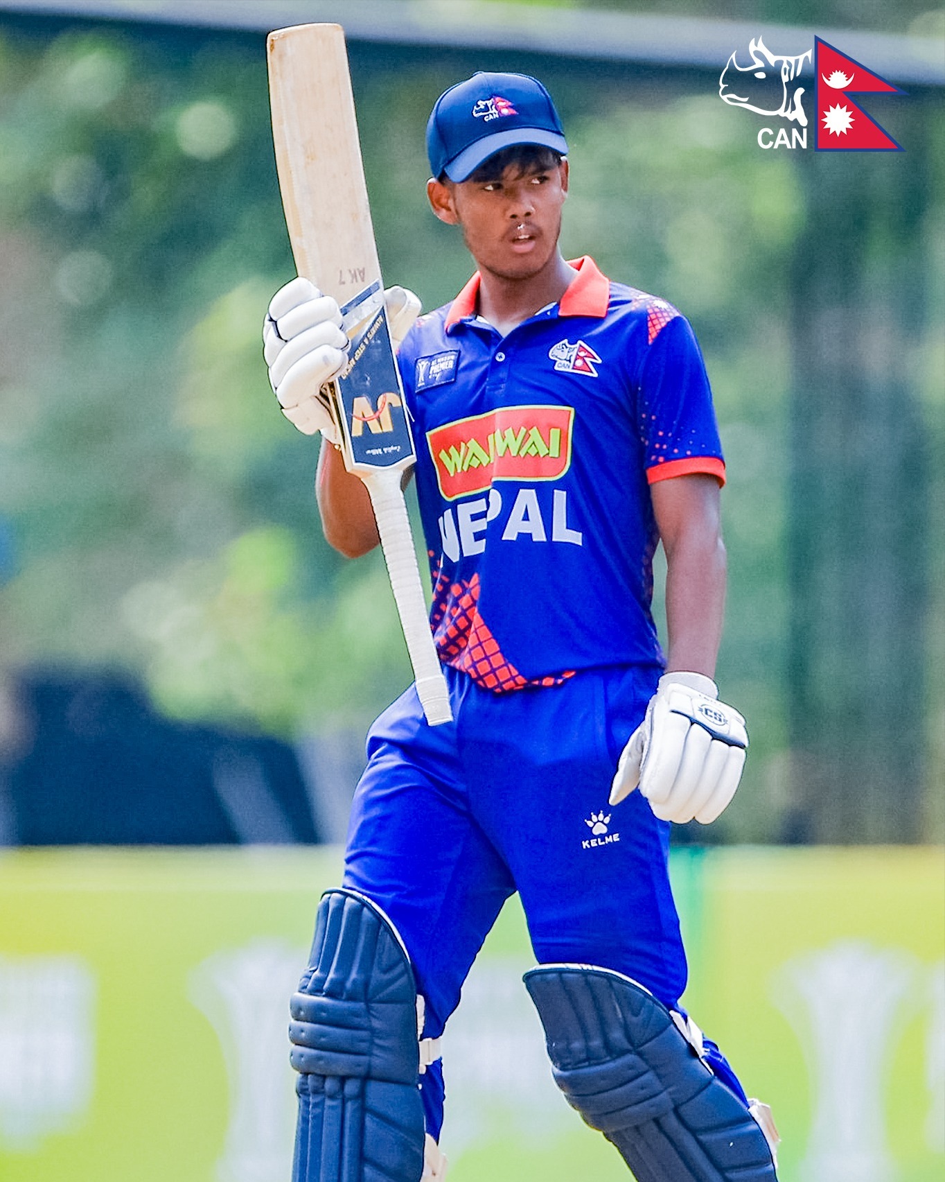 नेपालका अर्जुन कुमालले कीर्तिमानी शतक प्रहार गरे। उनले १११ बलमा १७ चौका र २ छक्काको मद्दतमा १४२ रन बताए।