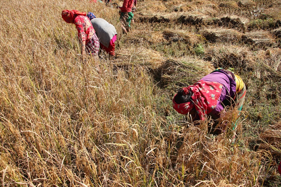 दशैँको टीका थापेर कोजाग्रत पूर्णिमासम्म नकुरी पाल्पाका किसानहरू अहिले धान स्याहार्न खेत–खेतमा व्यस्त देखिन्छन्।