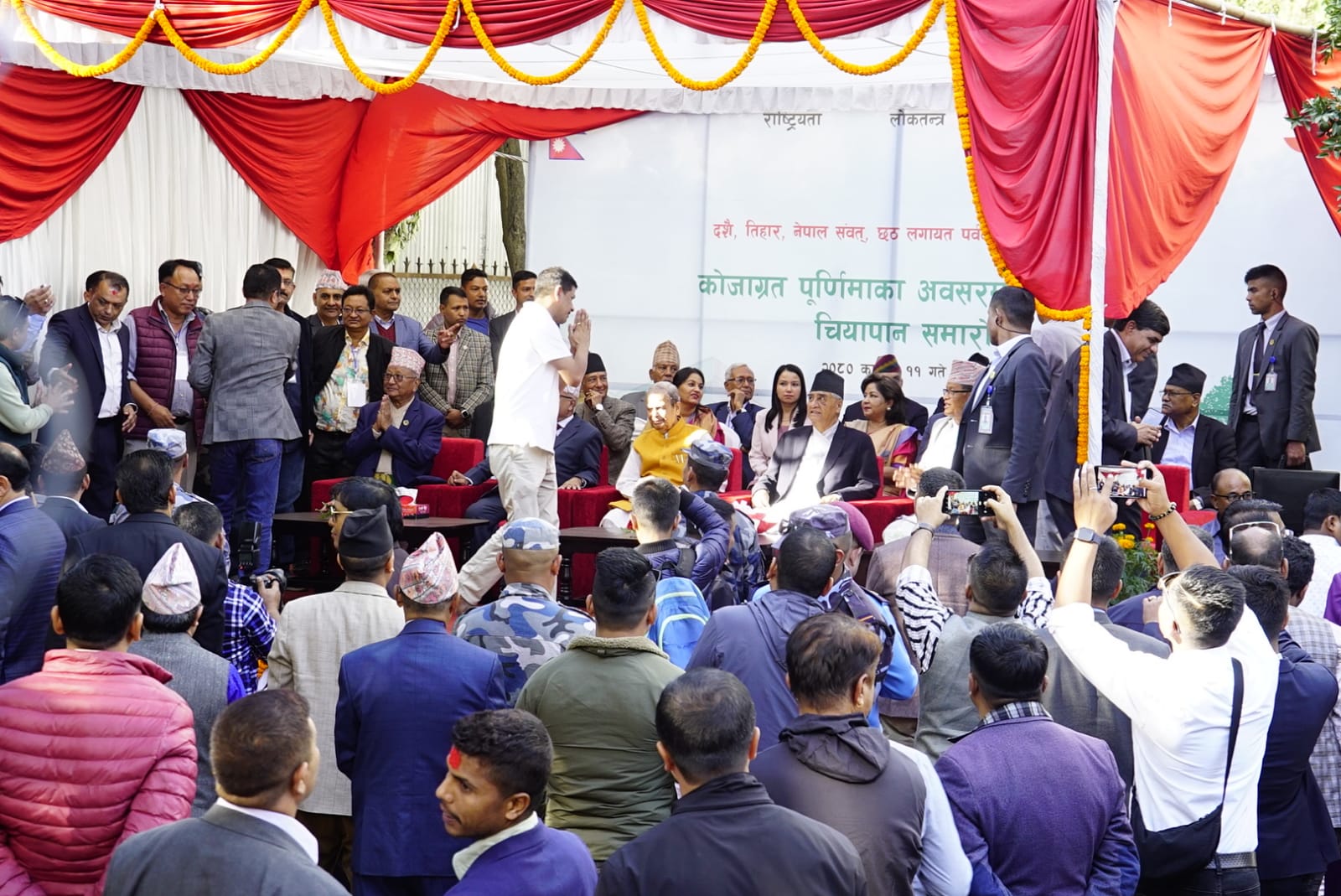 ललितपुरको सानेपास्थित पार्टी केन्द्रीय कार्यालयमा कांग्रेसले शनिबार दशैँ, तिहार, नेपाल संवत् र छठलगायत पर्वका अवसरमा चियापान तथा शुभकामना आदानप्रदान कार्यक्रम आयोजना गरेको हो।