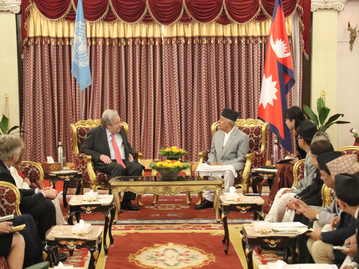 काठमाडौँ– राष्ट्रपति रामचन्द्र पौडेलसँग संयुक्त राष्ट्रसंघका महासचिव एन्टोनियो गुटेरेसले आज राष्ट्रपति कार्यालयमा शिष्टाचार भेट गरेका छन्।