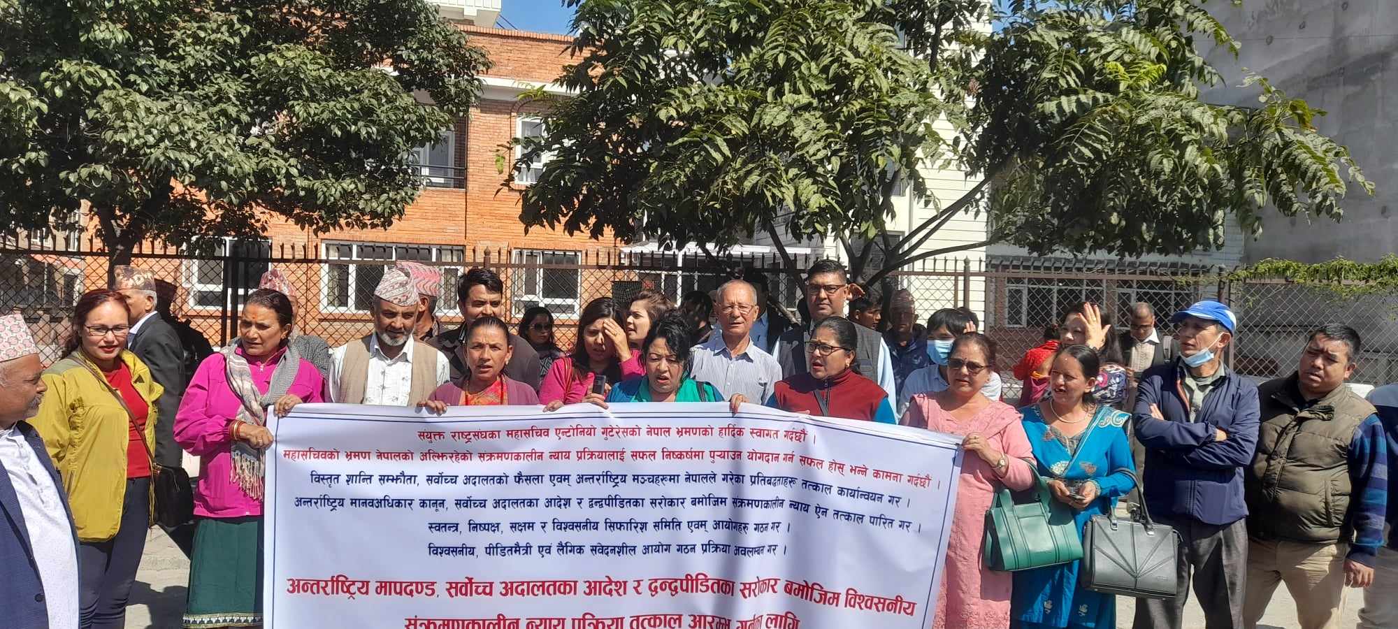मंगलबार काठमाडौँ जिल्ला अदालतअगाडि प्रदर्शन गर्दै उनीहरूले अन्तर्राष्ट्रिय मापदण्ड, सर्वोच्च अदालतका आदेश र द्वन्द्वपीडितका सरोकारबमोजिम विश्वसनीय संक्रमणकालीन न्याय प्रक्रिया तत्काल शुरू गर्न सरकार एवं जिम्मेवार राजनीतिक दलहरूको ध्यानाकर्षण गराएका हुन्।