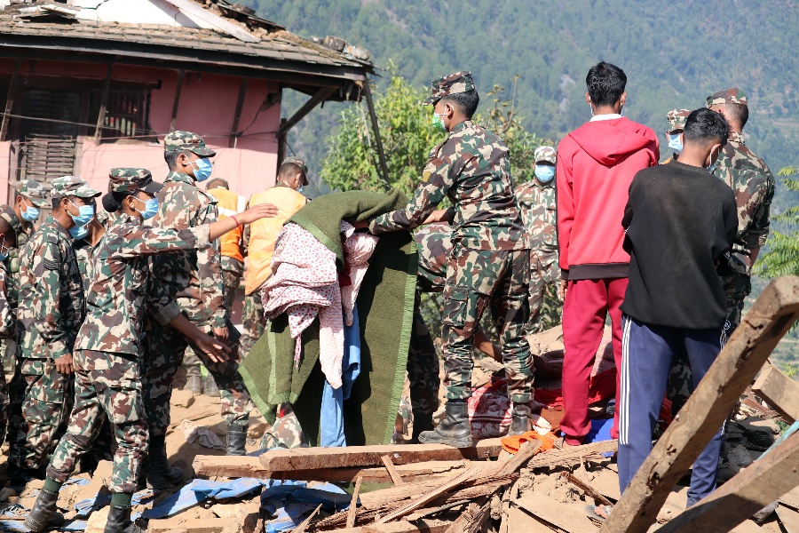 सेनाको टोलीले भग्नावशेष खाली गराएर त्यहाँबाट प्रभावित परिवारका सामान निकाल्ने काम गरिरहेको प्रवक्ता कृष्णप्रसाद भण्डारीले जानकारी दिए। भत्किएका र जीर्ण अवस्थाका घरमा पुरिएका सामान निकाल्न सेनाले सहयोग गरिरहेको उनको भनाइ छ।