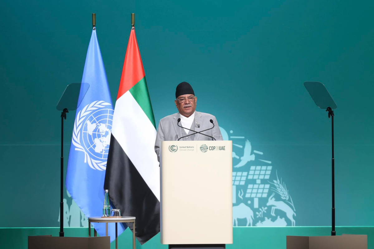 दुबई (यूएई)– “नेपालले जलवायु परिवर्तनका कारण भएको क्षतिको क्षतिपूर्ति पाउने वातावरण बनेको छ,” प्रधानमन्त्री पुष्पकमल दाहाल ‘प्रचण्ड’ले मंसिर १७ गते त्रिभुवन अन्तर्राष्ट्रिय विमानस्थलमा पत्रकारहरूसँग भनेका थिए। उनी दुबईमा जारी संयुक्त राष्ट्रसंघीय जलवायु सम्मेलनमा भाग लिएर स्वदेश फर्किंदै थिए।