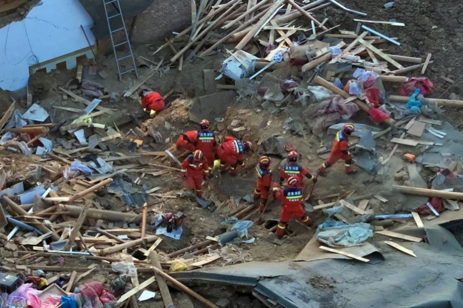 भूकम्पका कारण भवनहरू भत्किएका छन्। भग्नावशेषमा मानिसहरू पुरिएको हुनसक्ने भएकाले तालिमप्राप्त कुकुरको सहयोगमा खोजी तथा उद्धार कार्य जारी छ।
