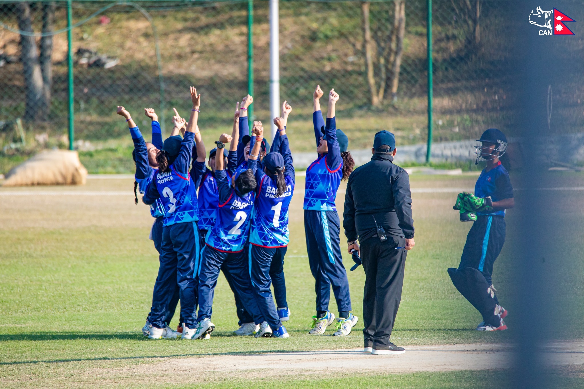 सुदूरपश्चिमकी रेवती धामी, बिन्दु रावल र कप्तान रितु कौन्जियाले दोहोरो अंकमा रन बटुल्न सकेनन्। मधेशकी शाक्षी यादव र कविता गौतमले २/२ विकेट लिए। पूजा महतोको नाममा १ विकेट रह्यो।