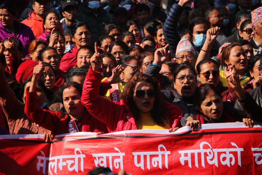 काठमाडौँ– काठमाडौँ उपत्यकामा छिटोभन्दा छिटो मेलम्चीको पानी वितरण गर्न माग गर्दै उपभोक्ताले प्रदर्शन गरेको छन्।