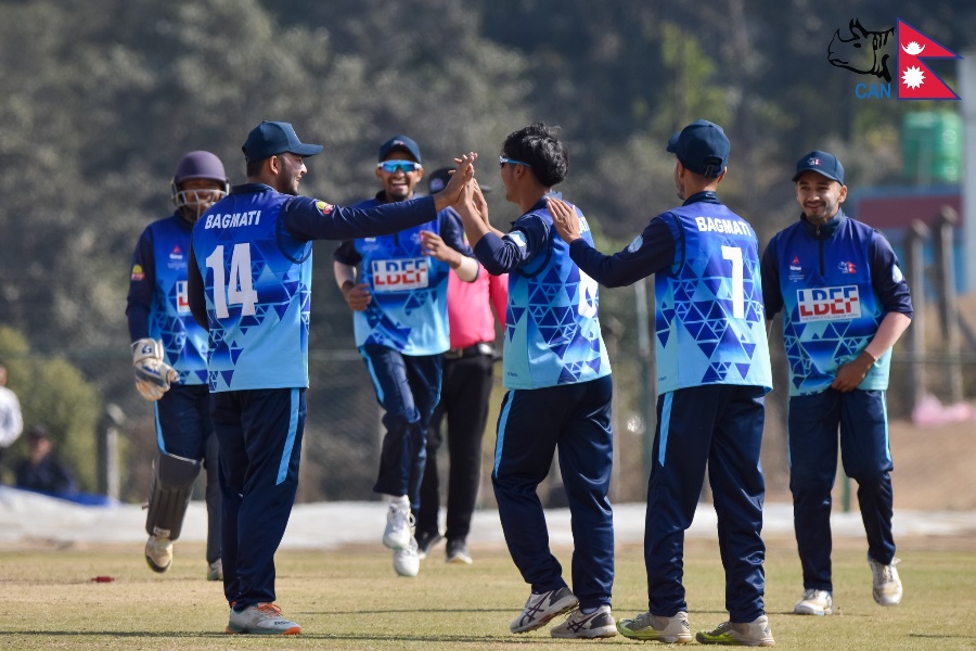 काठमाडाैँ– सूर्य तामाङको उत्कृष्ट बलिङप्रेरित बागमती प्रदेशले प्रधानमन्त्री कप एक दिवसीय क्रिकेट प्रतियोगितामा विभागीय टोली त्रिभुवन आर्मी क्लबलाई पराजित गरेको छ। बुधबार सम्पन्न खेलमा बागमतीले आर्मीलाई ३ विकेटले पराजित गरेको हो।