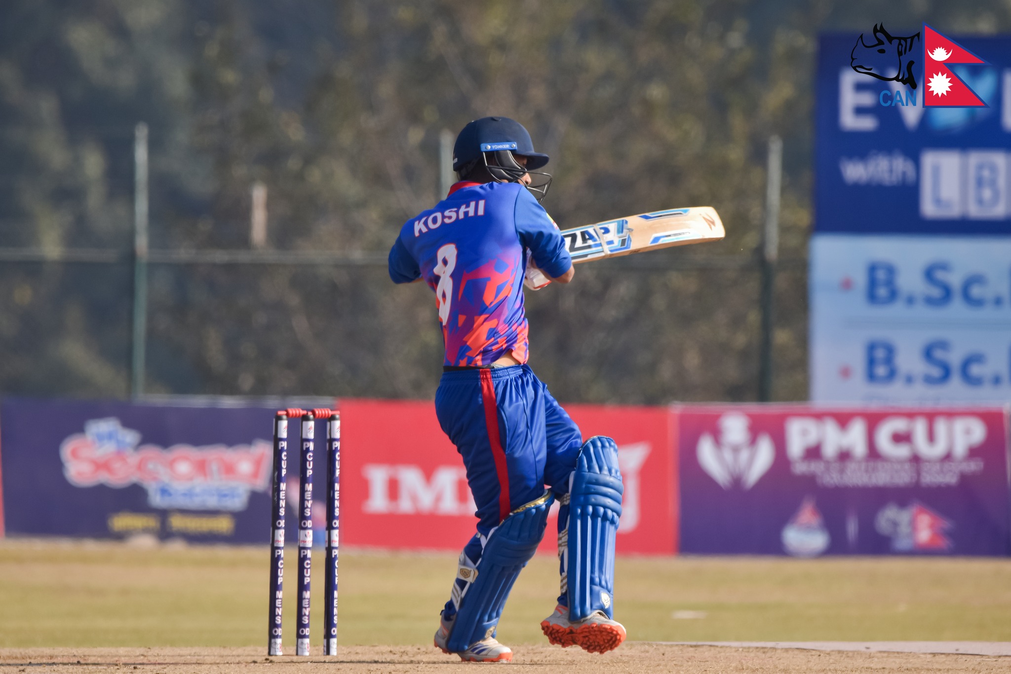 कोशीका ओपनर तथा कप्तान अंकित सुवेदीबाहेक अन्य ब्याटरले दोहोरो अंकमा रन बटुल्न सकेनन्। उनले ३७ बलमा ९ चौकासहित ४१ रन प्रहार गरेका थिए। कोशीले १९ रन अतिरिक्त पाएको थियो।