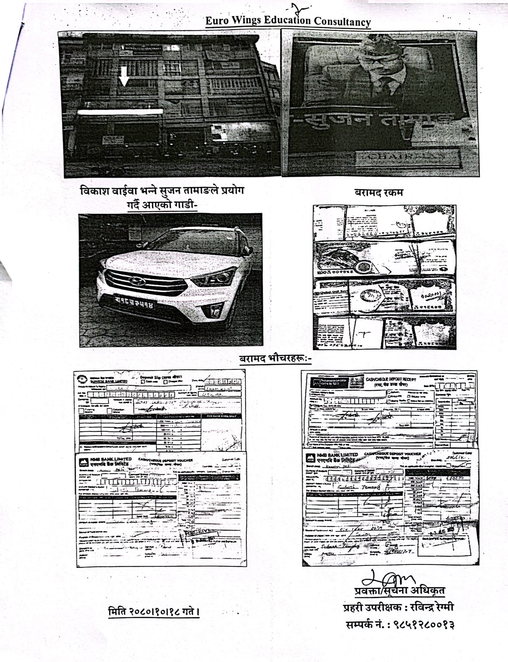 उनले काठमाडौँ महानगरपालिका– १६ स्थित बालाजु चोकमा युरो विंग्स एजुकेसन कन्सल्टेन्सी सञ्चालन गरी आफूलाई विकास वाइबा(तामाङ)को नक्कली परिचय दिई युरोपियन मुलुक पठाइदिन्छु भनी ६०० बढी सर्वसाधारणसँग करोडौँ रुपैयाँ ठगी गरेको प्रहरी नायब उपरीक्षक अनिल घिमिरेले बताए।