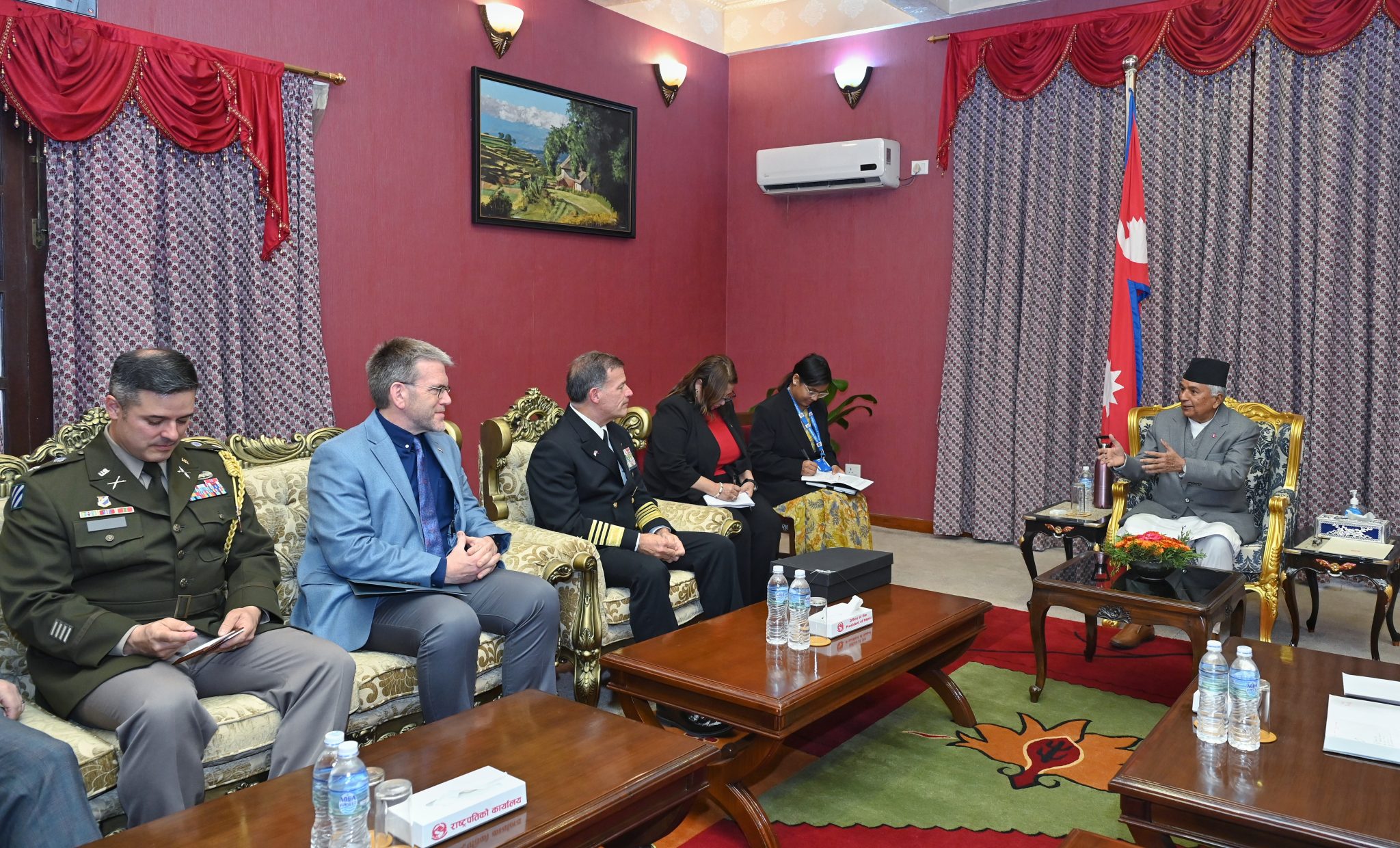 राष्ट्रपति रामचन्द्र पौडेलसँग अमेरिकी सेनाअन्तर्गत यूएस इन्डो–प्यासिफिक कमान्डका कमान्डर एडमिरल जोन सी अक्यैलिनोले शिष्टाचार भेट गरेका छन्।