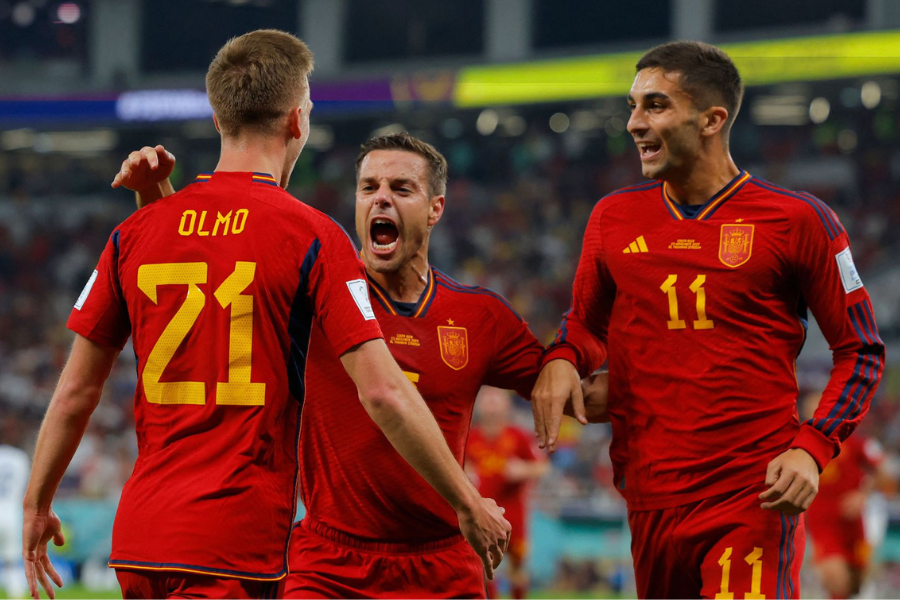 दोहास्थित अल थुमामा रंगशालामा बुधबार राति आफ्नो पहिलो खेलमा स्पेनले कोस्टा रिकामाथि ७–० को जित निकालेको हो। विश्वकप फुटबल इतिहासमै यो स्पेनको सबैभन्दा फराकिलो जित हो। स्पेनका लागि टोरेजले दुई गोल गरे भने ड्यानी ओल्मो, मार्को एसेन्सियो, गाभी, कार्लोस सोलर र अल्भारो मोराटाले १/१ गोल थपेका थिए।