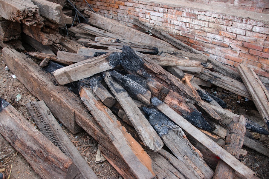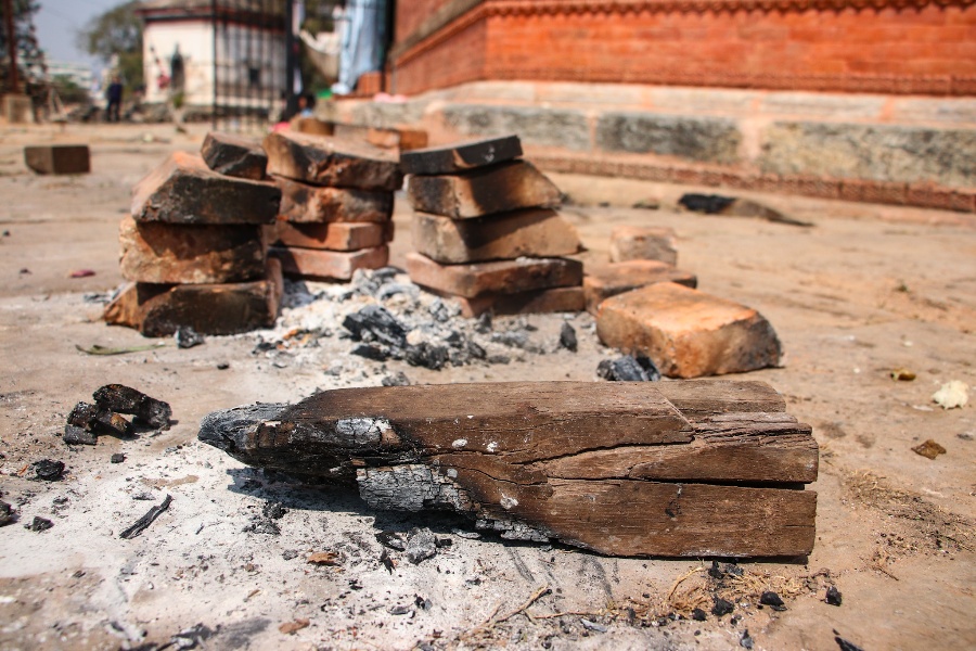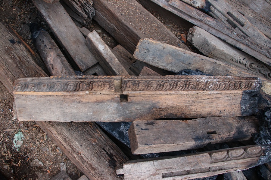 काठमाडौँको टेकु दोभानदेखि थापाथलीसम्मका क्षेत्रमा पुनर्निर्माणका क्रममा निकालिएका मन्दिर तथा सत्तलका पुरातात्त्विक महत्त्वका काठ जलाइएको छ।