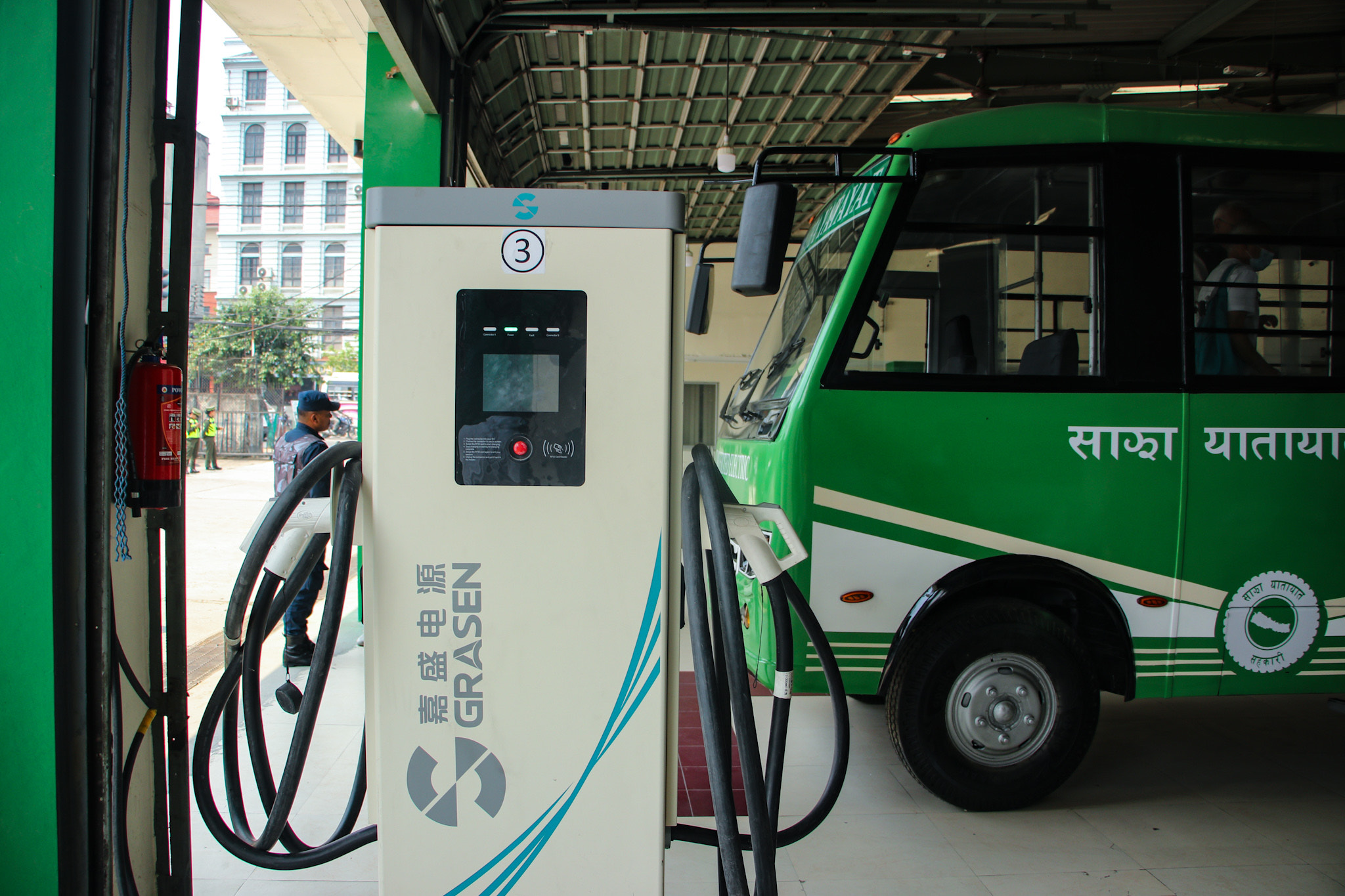 साझा यातायातले देशकै पहिलो १.१ मेगावाट क्षमताको २२ वटा विद्युतीय बस चार्ज गर्न सकिने चार्जिङ स्टेसन सञ्चालनमा ल्याइएको जनाएको छ। चार्जिङ स्टेसनमा प्रयोगमा आएसँगै ४० वटा विद्युतीय बसलाई पूर्ण रूपमा सञ्चालनमा ल्याइने साझा यातायातका अध्यक्ष कनकमणि दीक्षित बताउँछन्।