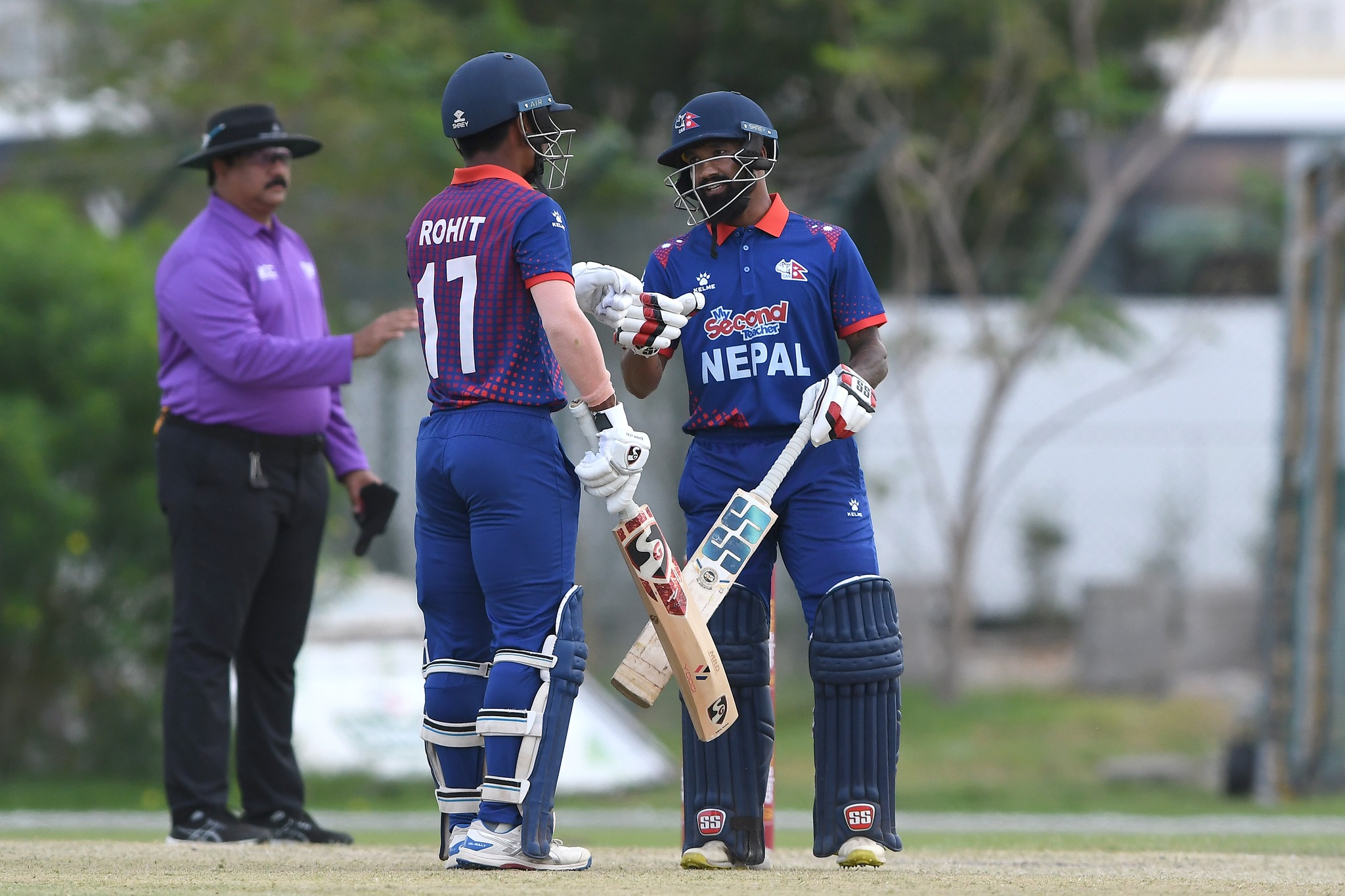 त्यस्तै, कप्तान रोहित पौडेलले २४ बलको समान गर्दै १ छक्काको मद्दतमा २८ रन बनाए। कुशल भुर्तेलले ४ चौकाको मद्दतमा २४ बनाए। दीपेन्द्र सिंह ऐरीले २० रन लिँदा गुल्सन झा १९ रनमा अविजित रहे।