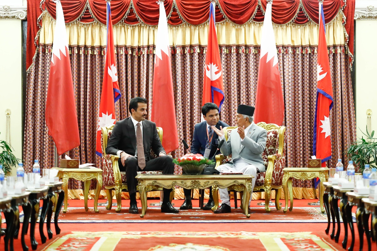 कतारका अमिर थानीलाई राष्ट्रपति भवन शीतल निवासमा राष्ट्रपति पौडेलले स्वागत गरेका थिए। राष्ट्रपति पौडेलको मैत्रीपूर्ण निमन्त्रणामा कतारका अमिर थानी नेपालको दुईदिने राजकीय भ्रमणमा मंगलबार अपराह्न काठमाडौँ आइपुगेका हुन्। राष्ट्रपति पौडेलसँगको भेटवार्ताका लागि विमानस्थलबाटै कतारका अमिर शीतल निवास पुगेका हुन्।