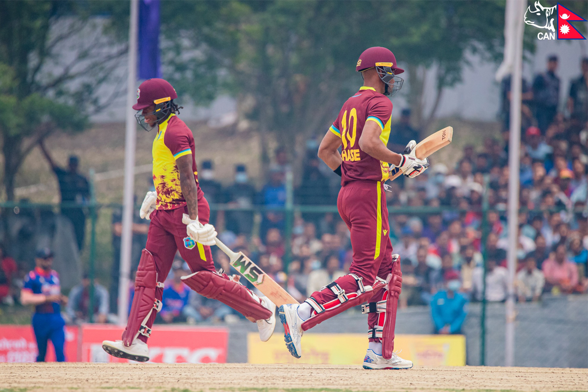 कीर्तिपुरस्थित त्रिवि क्रिकेट मैदानमा टस हारेर पहिला ब्याटिङमा उत्रिएको वेस्टइन्डिजले निर्धारित २० ओभरमा ५ विकेट गुमाउँदै २०४ रन बनायो।