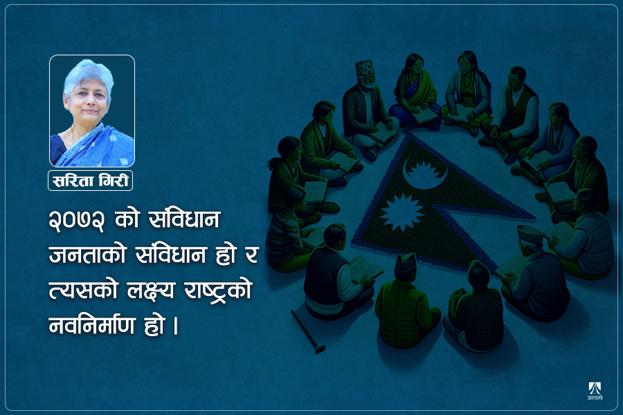 पुरानो नेपालको एउटा इतिहास थियो, विचार थियो, परिचय थियो, तर २०६२/६३ को जनक्रान्तिको बलमा निर्मित २०७२ को संविधान जनताको संविधान हो र त्यसको लक्ष्य नयाँ राष्ट्रको निर्माण हो।