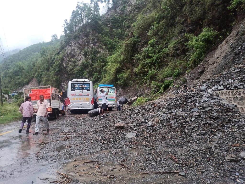 म्याग्दे गाउँपालिका–६ मौरी ओडारमा शनिबार पहिरो खस्दा सडक अवरुद्ध भएको छ। वर्षासँगै पहिरो खसिरहेकाले पानी नरोकिएसम्म पहिरो पन्छाउन कठिनाइ देखिएको उपरीक्षक रायले जानकारी दिए। “सडक माथिबाट निरन्तर पहिरो खसिरहेकाले पन्छाउन समस्या भइरहेको छ। पानी पर्न रोकिएपछि पहिरो पन्छाउने छौँ,” उनले भने।