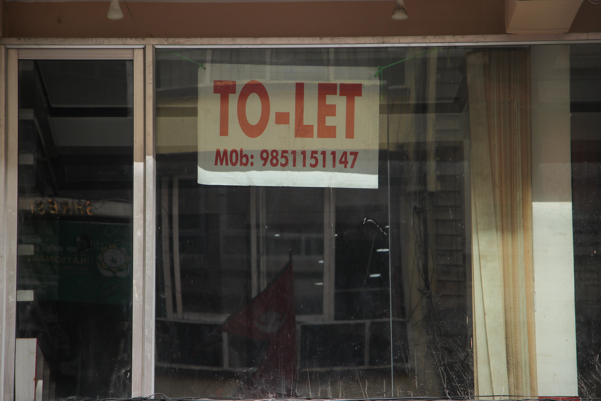 राजधानीका न्यूरोड, पुतलीसडक, असनलगायतका क्षेत्रमा अधिकांश सटर खाली देखिएका छन्। मुख्य व्यापार क्षेत्रका भवनमाथि अहिले व्यापारिक र अफिसका बोर्ड कम ‘टु-लेट’ (सटर खाली/भाडामा) लेखेका बोर्ड तथा पर्चा देखिन पाइन्छ। धेरै व्यापारिक मल पनि अहिले सुनसान जस्तै छन्।