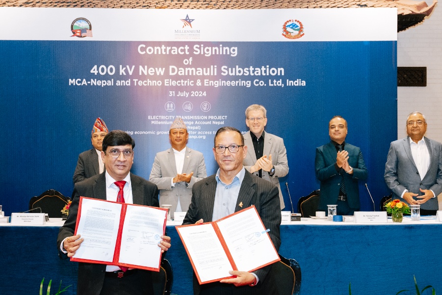 काठमाडाैँ– मिलेनियम च्यालेन्ज एकाउन्ट–नेपाल (एमसीए–नेपाल)ले तनहुँको दमौलीमा ४०० केभी क्षमताको नयाँ दमौली सबस्टेसन निर्माणका लागि भारतको टेक्नो इलेक्ट्रिक एन्ड इन्जिनियरिङ लिमिटेडसँग ३.८८ करोड अमेरिकी डलरको ठेक्का सम्झौता सम्पन्न भएको घोषणा गरेको छ।