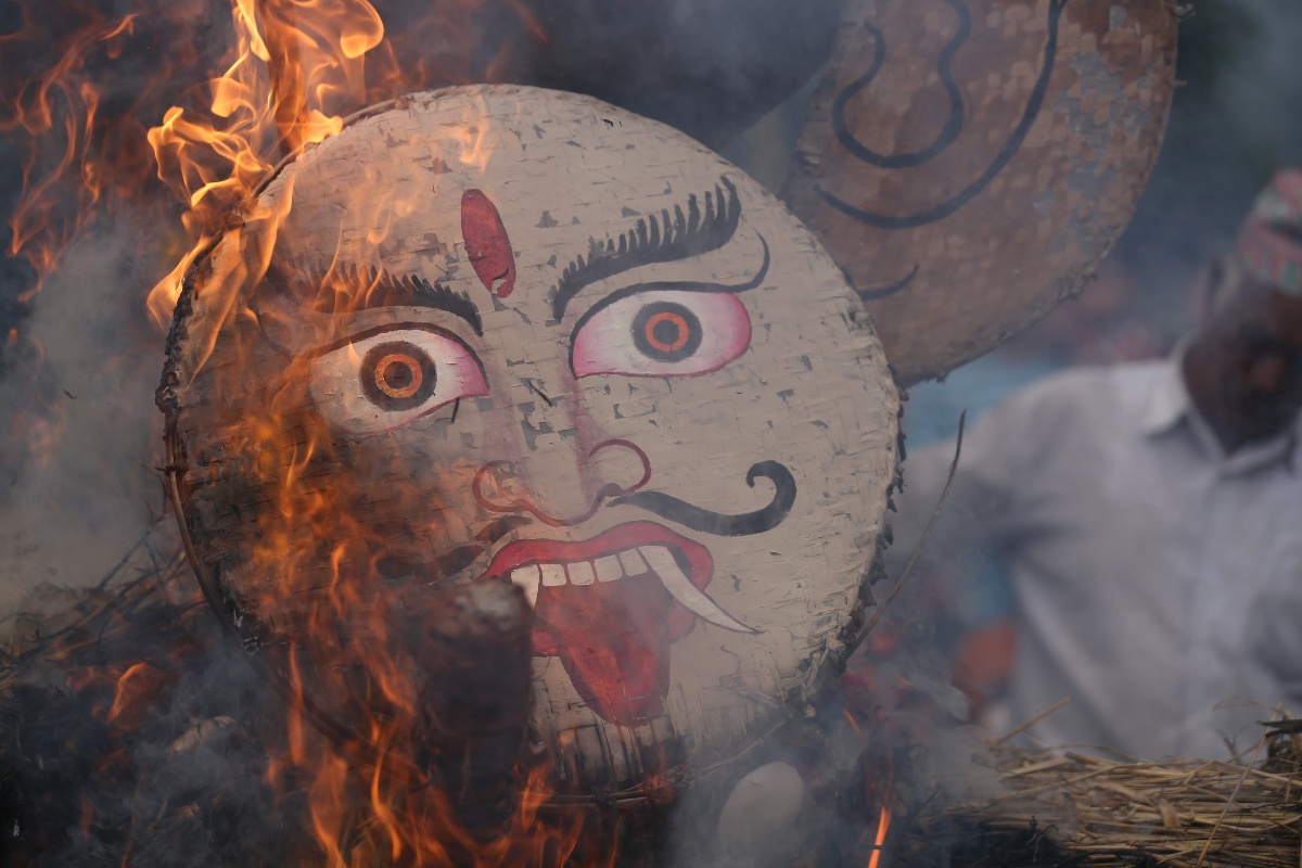 यस पर्वमा गठामंगल नाम गरेको नरभक्षी राक्षस मारिएको सम्झना स्वरूप बिहानै हरियो नर्कट, निगालो अथवा गहुँको छ्वाली मिसाएर तीनखुट्टे राक्षसको स्वरूप बनाइ दोबाटो र चौबाटोमा उभ्याइने चलन छ।