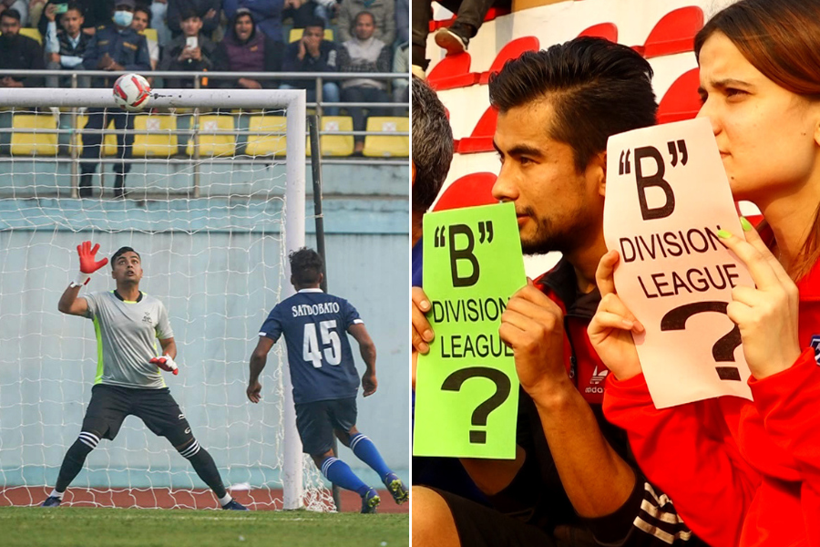 यता, लिग नै अनिश्चित भएपछि ‘बी’ डिभिजन क्लबका प्रतिनिधिहरू दबाबमूलक कार्यक्रम गरिरहेका छन्। उनीहरू कहिले एन्फा मुख्यालय पुग्छन् त कहिले ‘बी डिभिजन खोइ?’ लेखिएका ‘प्ला कार्ड’सहित ‘ए’ डिभिजनका खेल भइरहेको स्थान पुग्छन्।