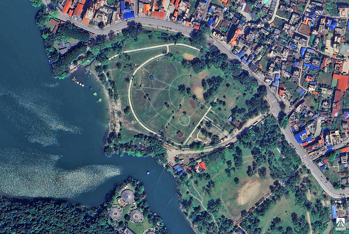 फेवाताल किनारमा अवस्थित बसुन्धरा पार्क क्षेत्रको गुगल तस्वीर।