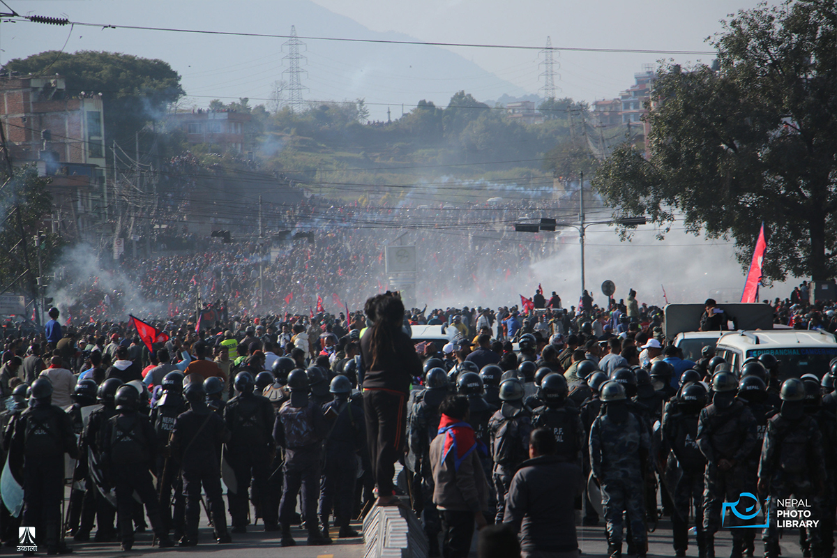 बल्खुबाट कालीमाटीतिर जान रोकिएपछि भिडबाट प्रहरीतर्फ ढुंगा प्रहार हुन थाल्यो। जवाफमा प्रहरीले पनि दर्जनौँ टियर ग्यास प्रहार गर्‍यो। एकैछिनमा भागाभाग शुरू भयो।