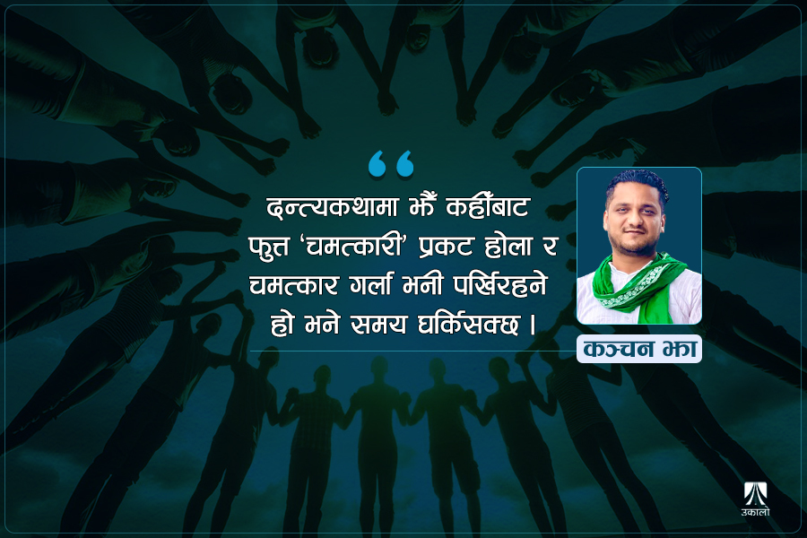 नयाँ ‘नामालूम’ र यथास्थितिवादीहरूले त अपनत्व नभएको व्यवस्था अपनाउने कुरै भएन। यस्तोमा, दन्त्य कथामा झैँ फुत्त कहीँबाट कोही ‘जादुगर’ आउला र चमत्कार गर्ला भनेर पर्खिरहने हो भने समय घर्किसक्छ। हामीले त्यो च्याम्पियन रेडिमेड (बनिबनाउ) पाउने होइन। व्यवस्थाप्रति वचनबद्ध र संवैधानिक–राजनीतिक दृष्टिकोणप्रति दृढ राजनीतिक व्यक्तित्व हामीबीचबाटै खोजिनुपर्छ। जसलाई अभ्यास र अनुभवले खार्दै ‘च्याम्पियन’ बनाउन सकियोस्। र, संघीयता, गणतन्त्र अनि लोकतन्त्रबीचको अन्योन्याश्रित सम्बन्धलाई थप मजबुत पार्न सकियोस्। अन्यथा विकेन्द्रीकृत सेवाहरूका खासियतबारे अनुभूत नगरेरै प्रदेश र स्थानीय संरचनाप्रति जनताको मोहभंग नहोला भन्न सकिन्न।