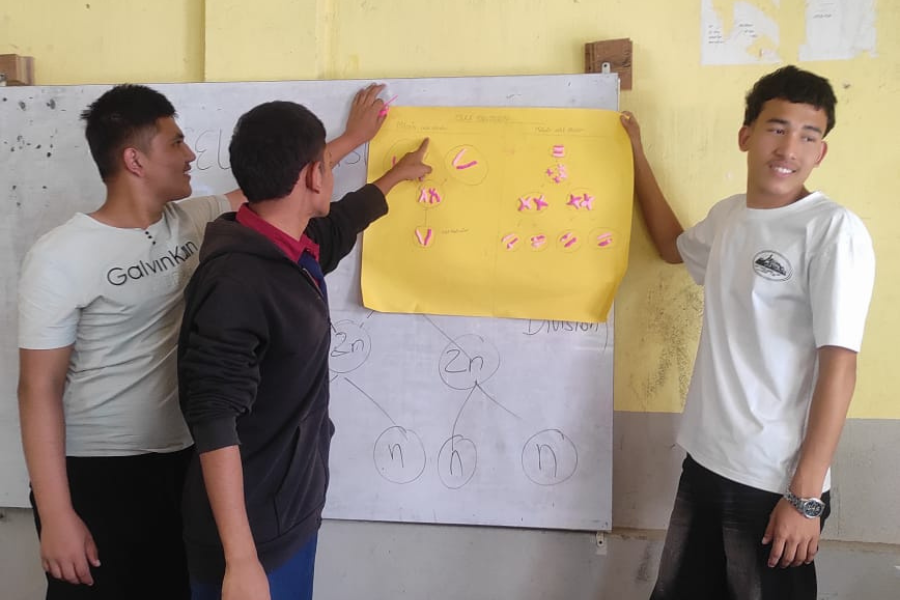 त्यही विद्यालयका केही विद्यार्थी भने माटो प्रयोग गरेर चार्ट पेपरमा कोष विभाजनको प्रक्रिया बनाइरहेका थिए। उक्त कक्षामा निर्देशिकाका रूपमा संलग्न शिक्षक स्वस्तिका सापकोटा भन्छिन्, “विद्यार्थीहरूमा व्यवहारिक ज्ञान थिएन र अस्पष्ट थिए। यस्तो अभ्यासबाट उनीहरूलाई विषयप्रति स्पष्टता प्राप्त भएको छ।”