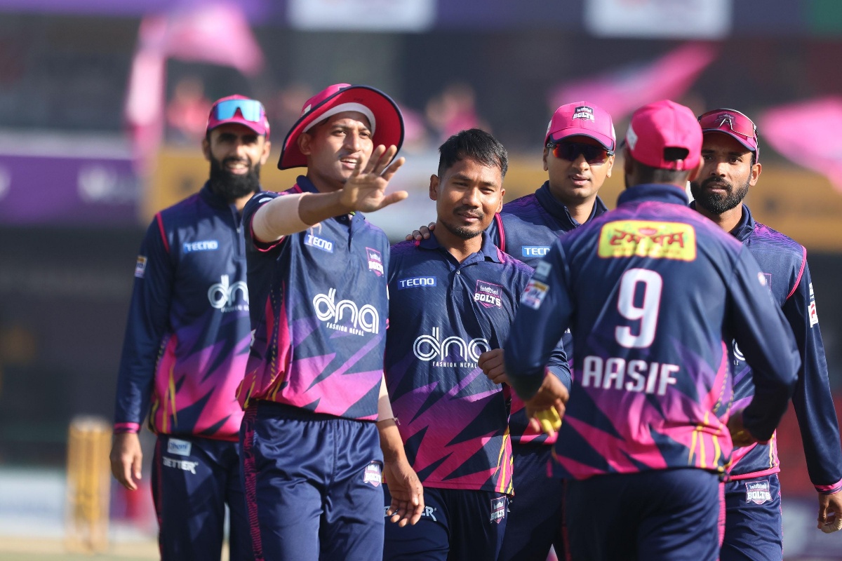 जनकपुरका ललित राजवंशीले ३ विकेट लिए। जेम्स निसामले २ तथा किशोर महतो र मोहम्मद मोसिनले समान १/१ विकेट लिए।