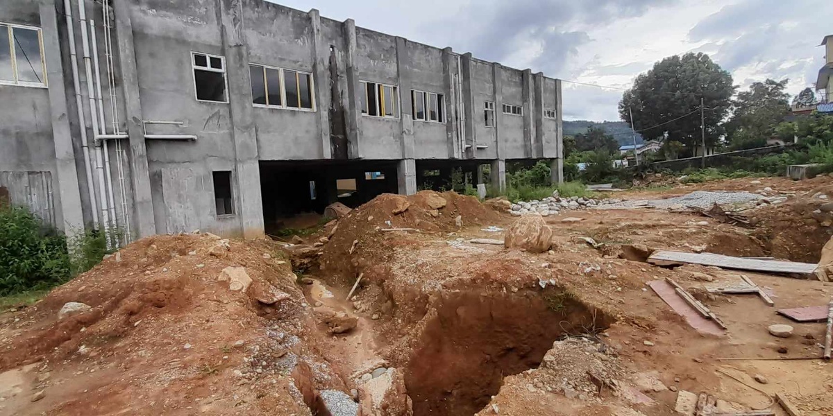 भवनको निर्माण चलिरहेको बेलामा भुइँतलाको भागमा ‘बीम’ रहेको ठाउँ बाहेकको जमिन भासिँदै गएपछि भवनको काम अघि बढ्न नसकेको अस्पताल विकास समितिका अध्यक्ष शंकर गिरीले बताए।