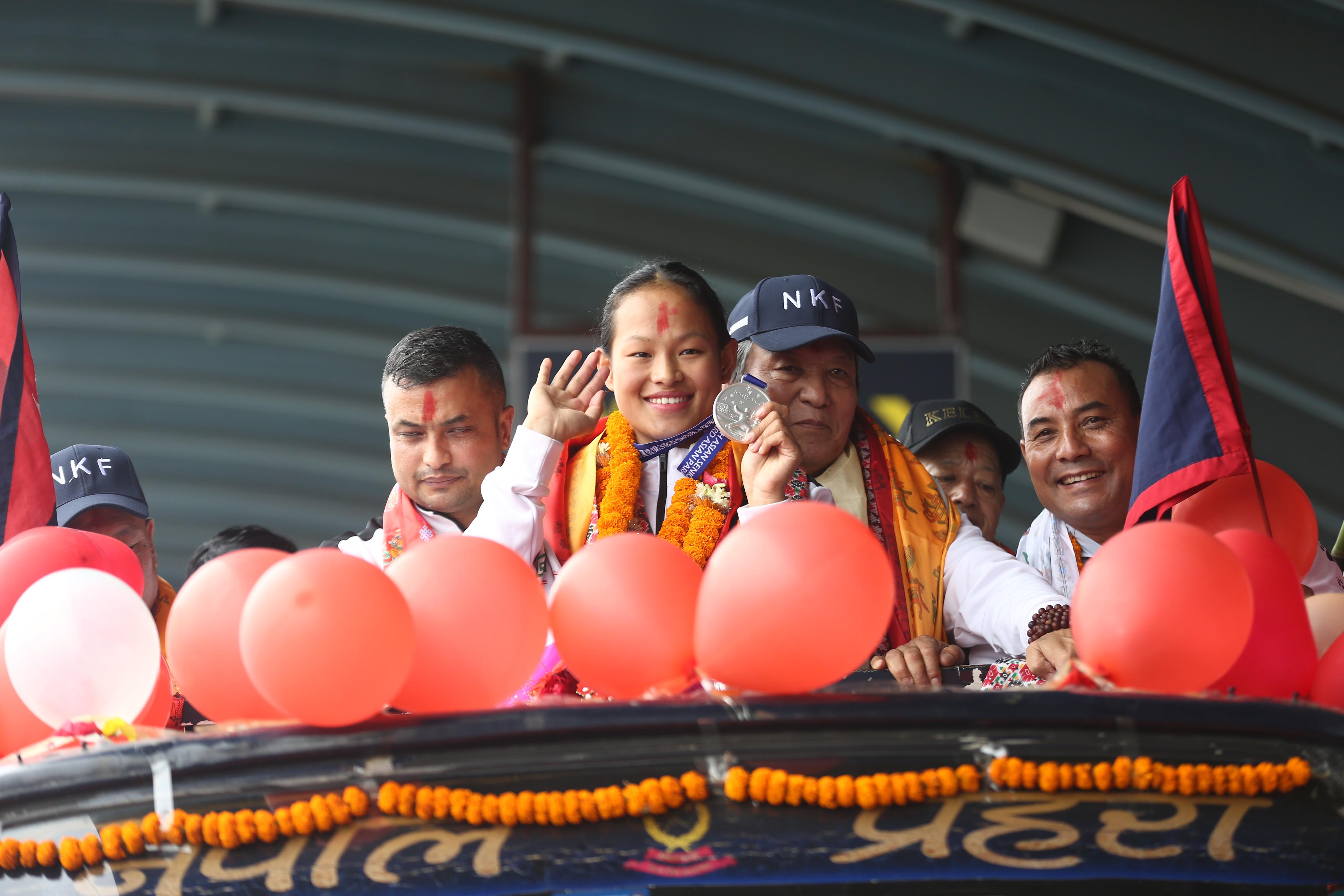चीनको हान्झाउमा आयोजित २०औँ एशिया सिनियर कराते च्याम्पियनसिपमा रजत पदक विजेता उनलाई त्रिभुवन अन्तर्राष्ट्रिय विमानस्थलमा राष्ट्रिय खेलकुद परिषद्का सदस्यसचिव टंकलाल घिसिङ, नेपाल कराते महासंघका अध्यक्ष युवराज लामालगायत खेल पदाधिकारीले स्वागत गरेका थिए।