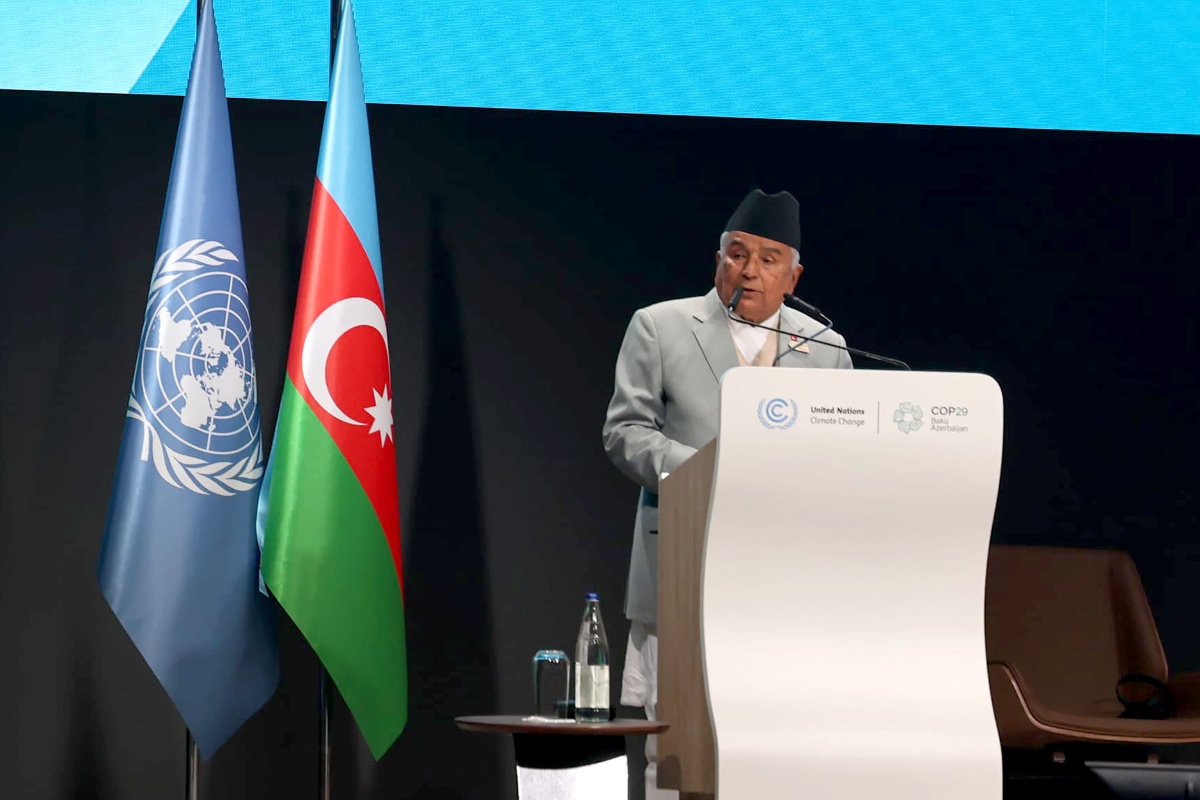 अजरबैजानको बाकु सहरमा यही कात्तिक २६ गतेदेखि सुरु भएको जलवायु परिवर्तनसम्बन्धी संयुक्त राष्ट्रसंघीय संरचना महासन्धि पक्ष राष्ट्रहरूको २९ औँ सम्मेलन (कोप–२९) मा विश्व नेताहरूको उच्च स्तरीय सत्रलाई मंगलबार यहाँ सम्बोधन गर्दै राष्ट्रपति पौडेलले सो आह्वान गरेका छन्।
