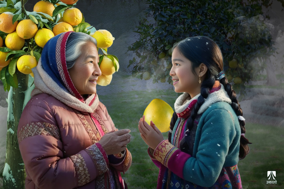 धेरैसँग छुच्चो बोली, रूखो मिजास, आफ्नै सन्तान, छरछिमेकसँग पनि बेलाबखत बखेडा। तर मलाई सधैँ माया गर्ने। ‘ए मैयाँ, माँ काँ बोडी–बजी खान आऊ’, ‘टमीले टोक्छ, घर घुमेर आऊ।’ बोडी–बजी त भन्ने कुरा न हो, त्यहाँ पुग्दा कम्तीमा सात–आठ थरीका परिकारले सिँगारिएको थाल हुन्थ्यो। बारीमा फलेका मौसमी फलफूल हुन्थे, मलाई भने जाडो याममा त्यो सिँगारिएको थालसँग राखिएको भोगटे सबैभन्दा प्रिय।