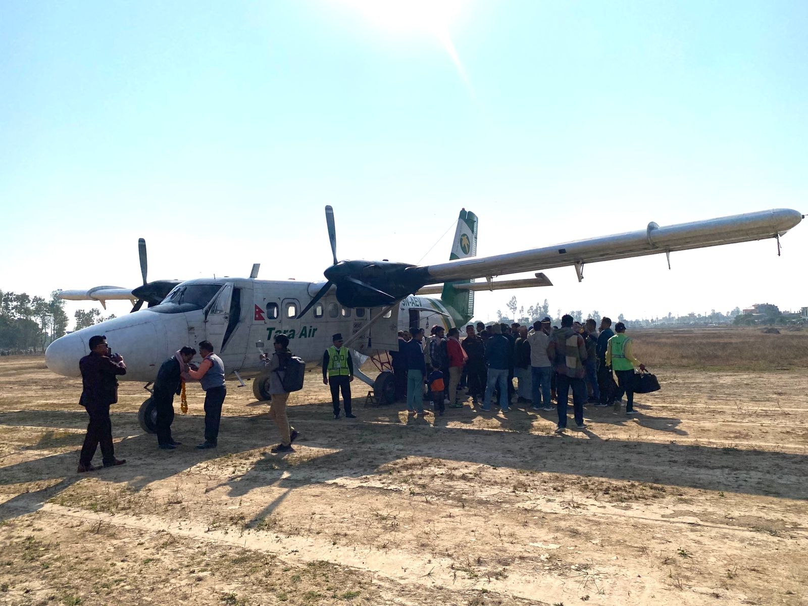 काठमाडौँदेखि नेपालगन्जसम्म यति एयरलाइन्समार्फत र नेपालगन्जबाट ‘कनेक्टिङ फ्लाइट’मार्फत टीकापुर विमानस्थलसम्म तारा एयरले उडान गर्ने गरी व्यवस्थापन गरिएको टीकापुरका नगरप्रमुख डगौरा थारूले जानकारी दिए।