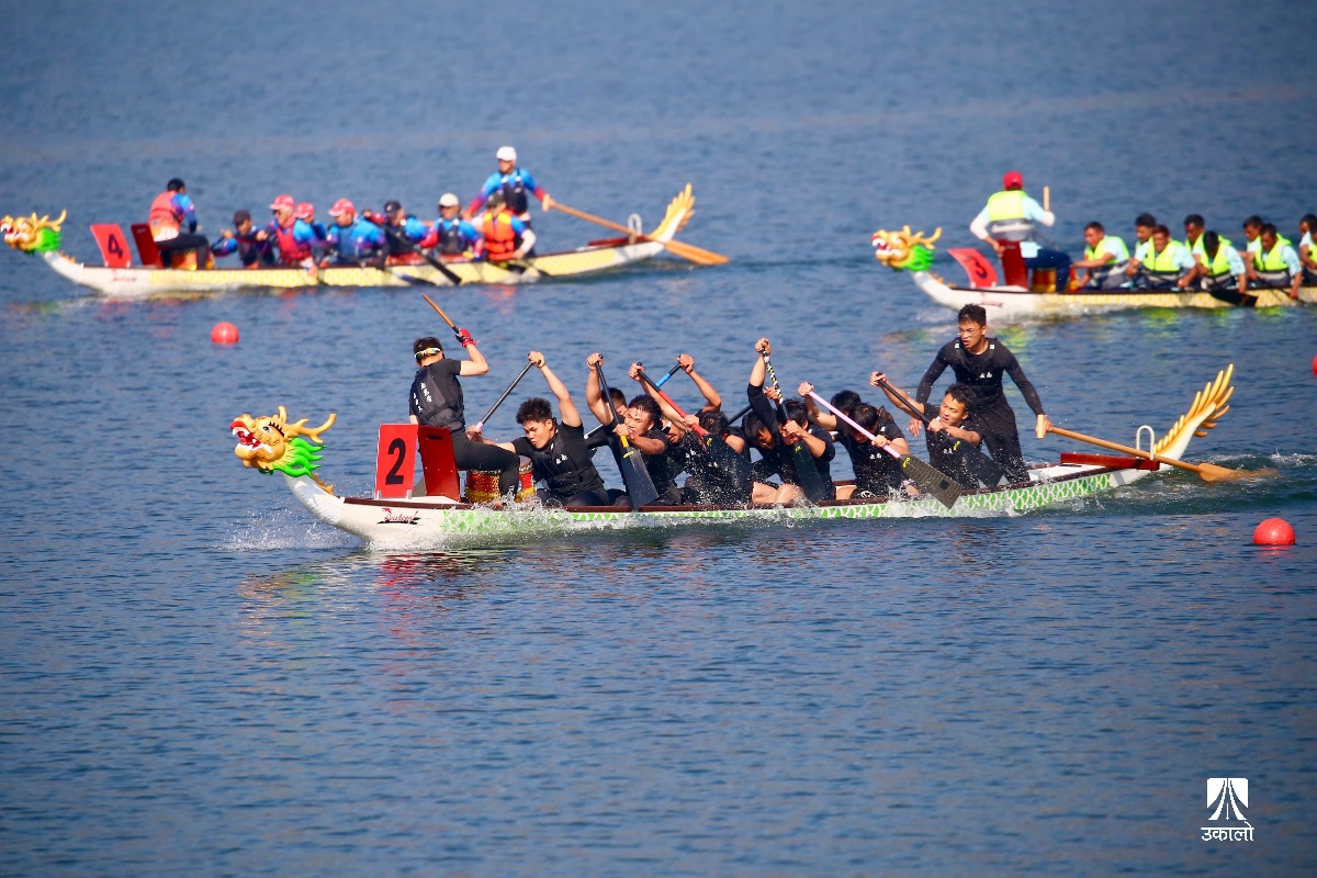 पोखराको फेवातालमा आयोजित ‘नेपाल–चीन मैत्रीपूर्ण ड्रागन बोट रेस फेस्टिभल’मा नेपाल, चीन र सिंगापुरका २० टोली सहभागी छन्।