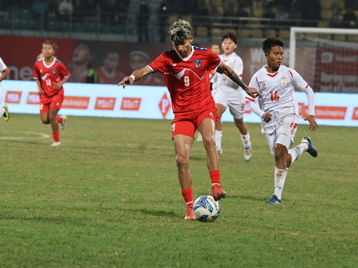 अन्तर्राष्ट्रिय महिला फुटबल च्याम्पियनसिपअन्तर्गत समूह चरणको अन्तिम खेलमा नेपाल र म्यानमारले २–२ गोलको बराबरी खेलेका छन्।